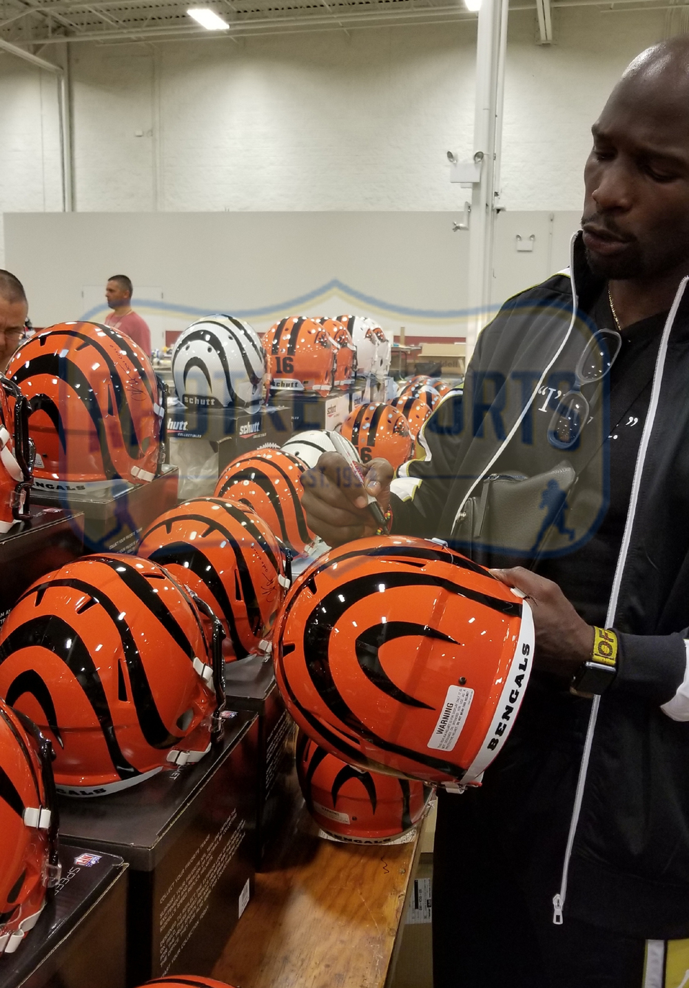 – Hand Signed by Chad Johnson – Cincinnati Bengals Replica Speed Helmet – JSA Certificate of Authenticity – JSA Serial Numbered & Databased Hologram – Picture of Chad from the signing
