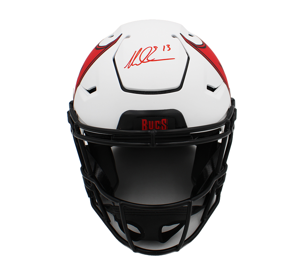 A Tampa Bay Buccaneers Speed Flex Authentic Lunar NFL Helmet hand signed by Mike Evans. The item and signature are in excellent condition. Mike was the 7th overall pick in the 1st round of the 2014 NFL Draft and a a 2016 Pro Bowl winner. AUTHENTICATION: The item is accompanied by a Beckett Certificate of Authenticity – Beckett Serial Numbered & Databased Hologram *** Radtke Sports uses professional lighting for their product images that may show reflections. ***