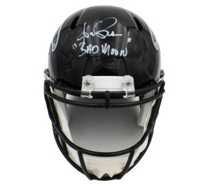 Andre Rison Signed Atlanta Falcons Speed Full Size NFL Helmet with “Bad Moon” Inscription – White Ink