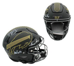 Jim Kelly, Andre Reed, Thurman Thomas Signed Buffalo Bills Speed Flex Authentic Salute to Service 4 NFL Helmet