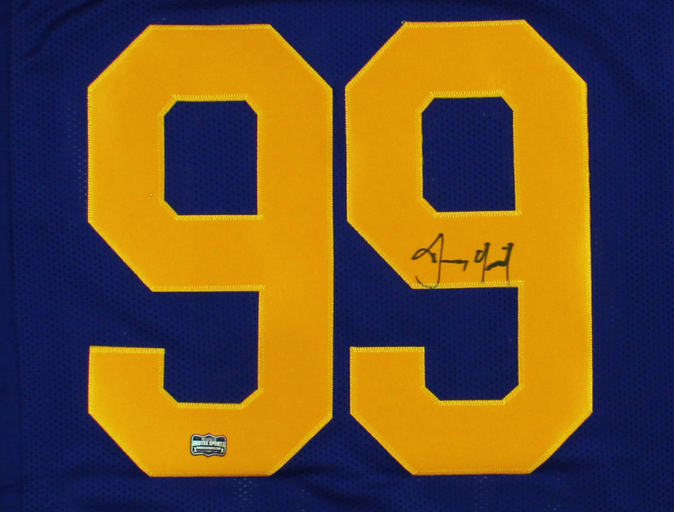 A St. Louis Rams Custom Blue Vermeil Jersey hand signed by Dennis Quaid. The signature and item are in excellent condition. Dennis is an American Actor. He is known for acting in both comedys and dramatic roles. AUTHENTICATION: The item has been tagged with a Radtke Sports SmarTag powered by Prova Technology, which gives you digital access to the item’s authentiction records, including a proof from the sigining. ***Radtke Sports uses professional lighting for our product images that may show reflections. We also feature watermarks on our proof pictures. The picture you see in the authentication record will NOT have a watermark. ***