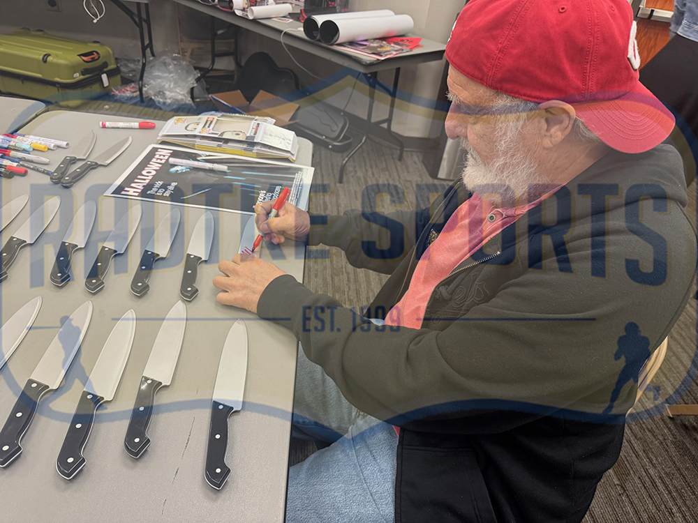 A Halloween 12″ Plastic Replica Kitchen Butcher Knife hand signed by Nick Castle. The item and signature are in excellent condition. Nick Castle is one of the actor who portrays “Michael Myers” in the Halloween film series. AUTHENTICATION: The item has been tagged with a Radtke Sports SmarTag powered by Prova Technology, which gives you digital access to the items authentication records, including a proof picture from the signing. ***Radtke Sports uses professional lighting for their product images that may show reflections. We also feature watermarks on our proof pictures. The picture you see in the authentication record will NOT have a watermark. ***