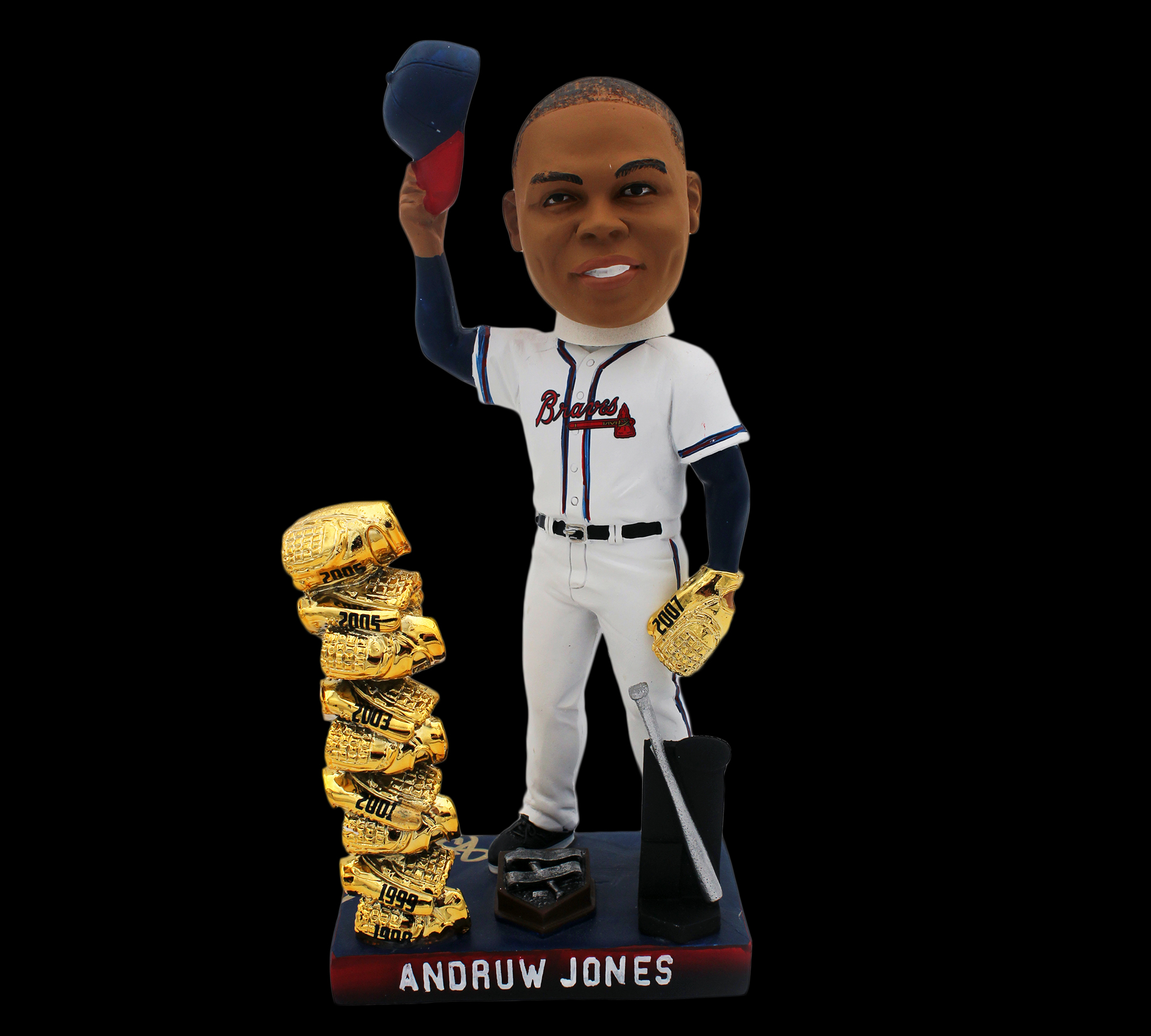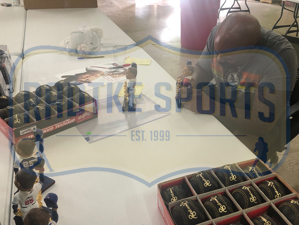 An Atlanta Braves White Jersey Bobblehead hand signed by Andruw Jones. The item and signature are in excellent condition. Andruw is a 5x All Star, 10x Gold Glove Award Winner, and a truly memorable Atlanta Braves alumni. AUTHENTICATION: The item is accompanied by a Radtke Sports Certificate of Authenticity – Radtke Sports Serial Numbered and Databased Hologram – Picture of Andruw from the Signing *** Radtke Sports uses professional lighting for our product images that may show reflections. We also feature watermarks on our proof pictures. The picture you receive will NOT have a watermark.***