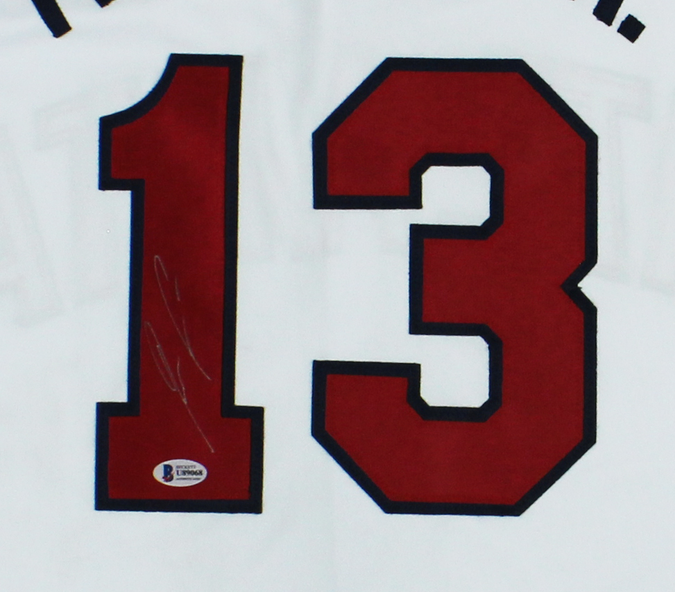 An Atlanta Custom White Jersey hand signed by Ronald Acuna. The item and signature are in excellent condition. Ronald is a professional baseball player who plays outfield. He won the National League Rookie of the Year award and the Silver Slugger award in 2018. AUTHENTICATION: The item is accompanied by a Beckett Certificate of Authenticity – Beckett Serial Numbered and Databased Holograms *** Radtke Sports uses professional lighting for our product images that may show reflections. ***