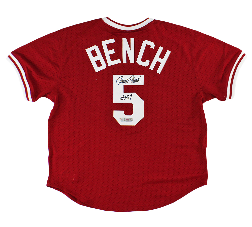 Johnny Bench Signed Cincinnati Reds Mitchell & Ness Red MLB Jersey With “HOF 89” Inscription