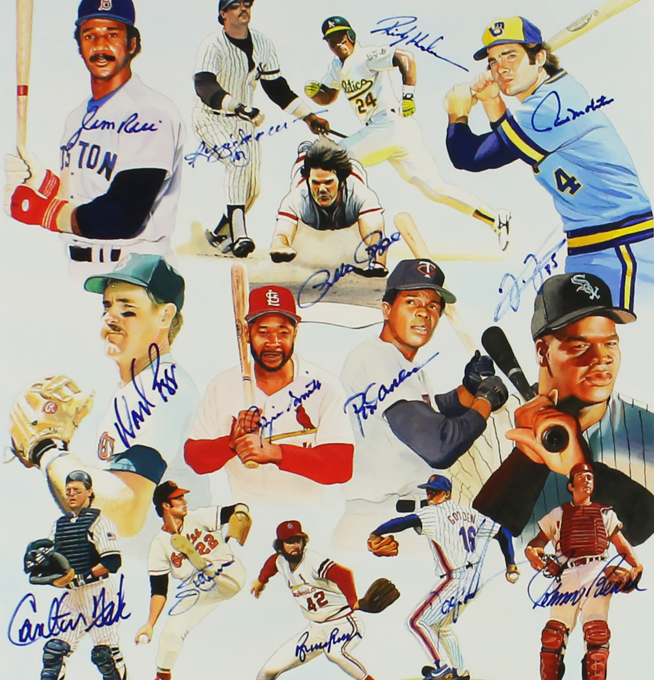 Jim Rice, Reggie Jackson, Rickey Henderson Multi-Signed #3 Field of Dreams A Team of Dreams Unframed 16×23 MLB Print with 13 additional signatures – PP 3/14