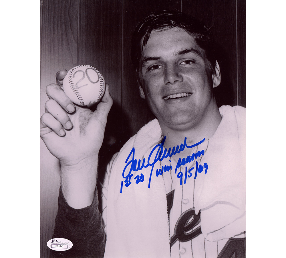 A New York Mets Unframed 8×10 Black & White Holding Ball MLB Vertical Photo hand signed by Tom Seaver. The item and signature are in excellent condition. In addition to signing his name, Tom also inscribed “1st 20 Wins Season 9/5/69” on the item. Tom is a former professional baseball player who played 20 season in the MLB as a pitcher. He is a World Champion, 12x All Star, 3x NL CY Young Award Winner and Pitched a no hitter in 1978. AUTHENTICATION: The item is accompanied by a JSA Certificate of Authenticity – JSA Serial Numbered and Databased Hologram. ***Radtke Sports uses professional lighting for our product images that may show reflections. ***