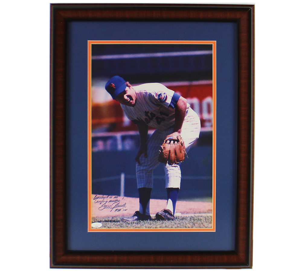 Tom Seaver Signed New York Mets Framed 12×18 MLB Photo with “Benched is No Laughing Matter & HOF 92” Inscription