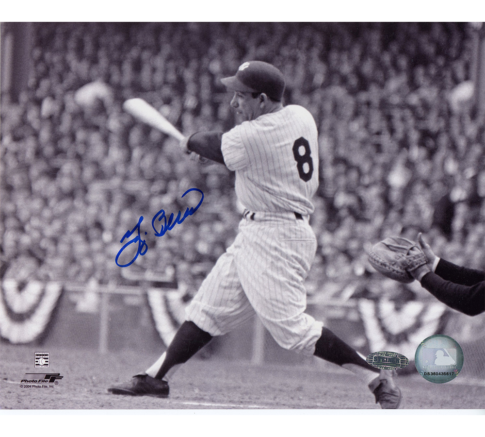 Yogi Berra Signed New York Yankees Unframed 8×10 Black and White Photo – Horizontal Swinging