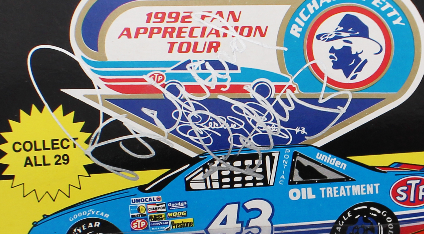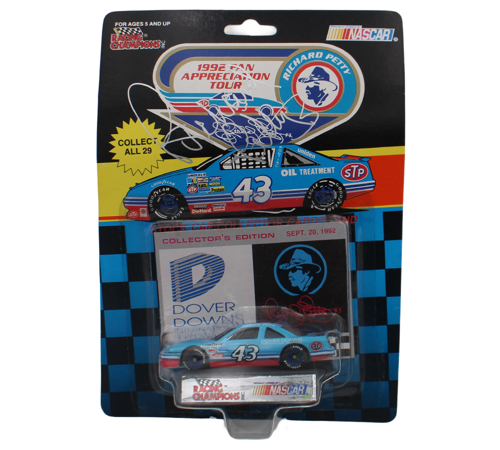 A NASCAR Dover Downs Sept 20, 1992 Racing Champions Toy Car hand signed by Richard Petty. The signature and item are in excellent condition. Richard is a former stock car racing driver nick named “the King”. He competed from 1958-1992, winning many awards and setting records. AUTHENTICATION: Your item has been tagged with a Radtke Sports SmarTag powered by Prova Technology, which gives you digital access to your items authentication records. ***Radtke Sports uses professional lighting for our product images that may show reflections. ***