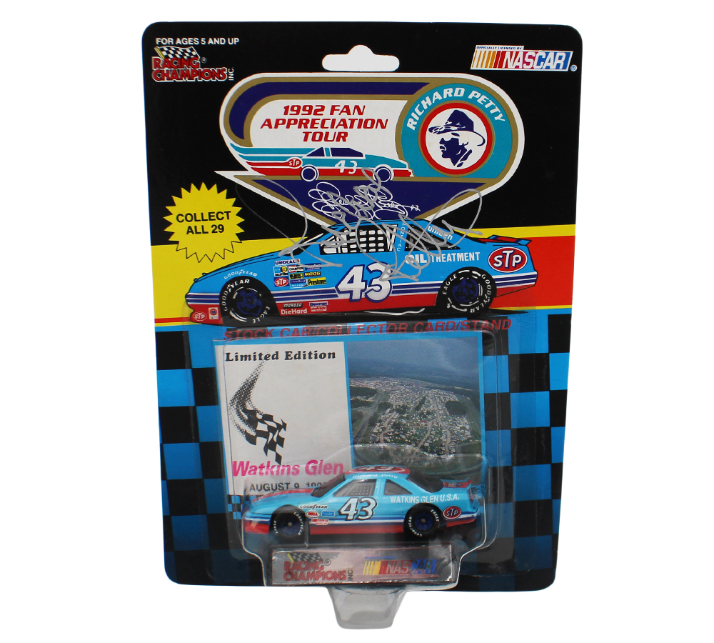 A NASCAR Watkins Glen Limited Edition August 9, 1992 Racing Champions Toy Car hand signed by Richard Petty. The signature and item are in excellent condition. Richard is a former stock car racing driver nick named “the King”. He competed from 1958-1992, winning many awards and setting records. AUTHENTICATION: Your item has been tagged with a Radtke Sports SmarTag powered by Prova Technology, which gives you digital access to your items authentication records. ***Radtke Sports uses professional lighting for our product images that may show reflections. ***