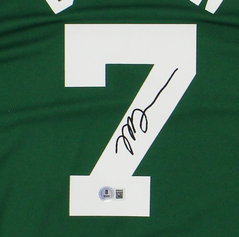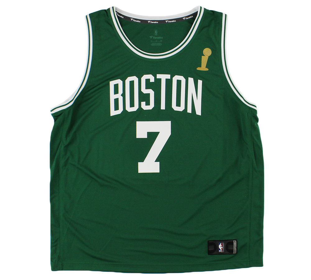 A Boston Celtics Fanatics 2024 NBA Finals Champion Green Jersey hand signed by Jaylen Brown. The signature and item are in excellent condition. Jaylen is a professional basketball player for the Boston Celtics. He is an NBA Champion & NBA Finals MVP. AUTHENTICATION: The item is accompanied by a Beckett Serial Numbered and Databased Hologram. ***Radtke Sports uses professional lighting for our product images that may show reflections. ***