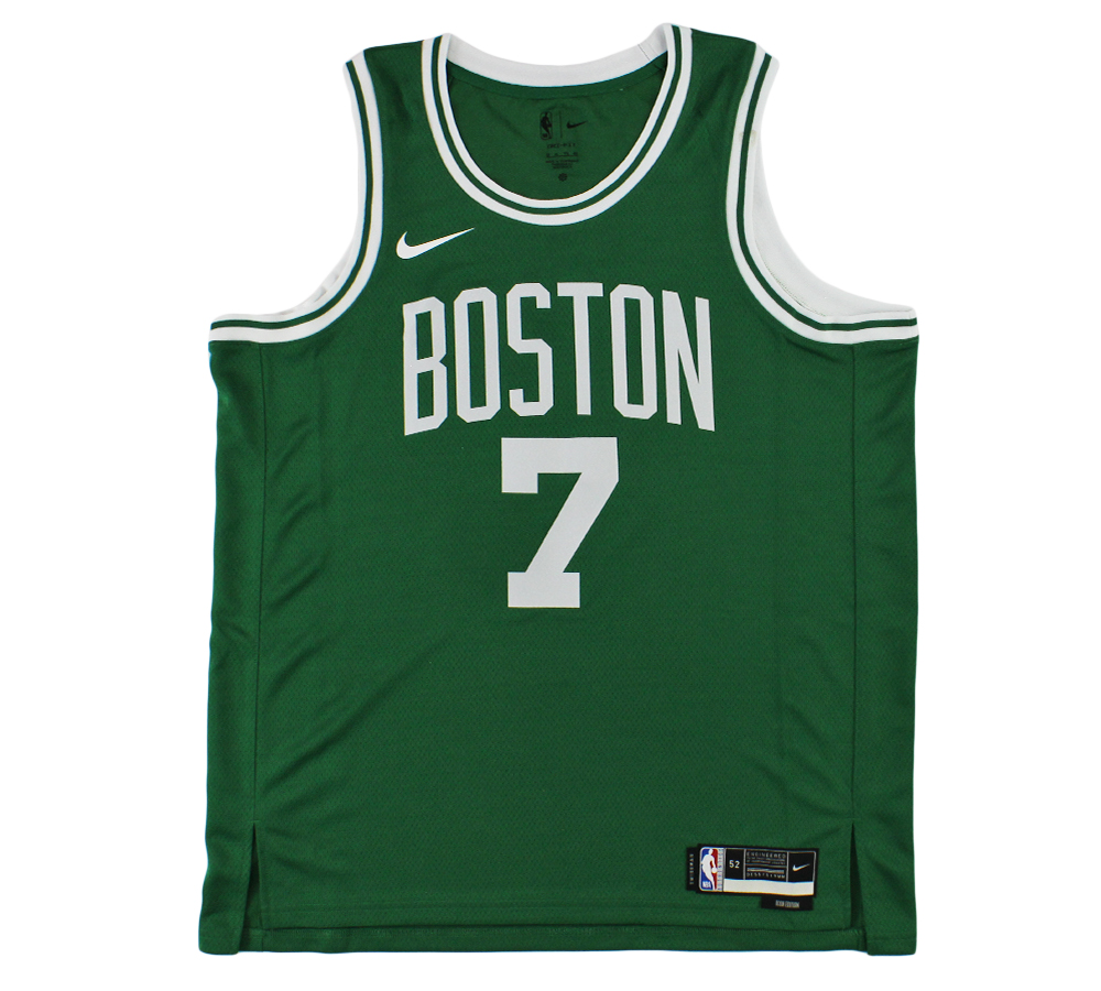 A Boston Celtics Nike Swingman Icon Edition Kelly Green NBA Jersey hand signed by Jaylen Brown. The signature and item are in excellent condition. Jaylen is a professional basketball player for the Boston Celtics. He is an NBA Champion & NBA Finals MVP. AUTHENTICATION: The item is accompanied by a Beckett Serial Numbered and Databased Hologram. ***Radtke Sports uses professional lighting for our product images that may show reflections. ***