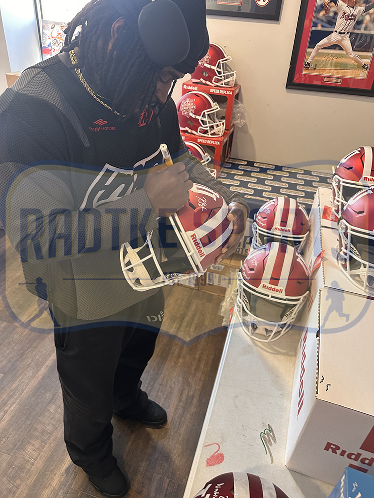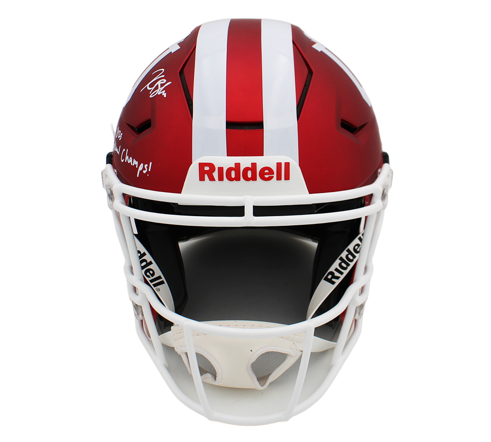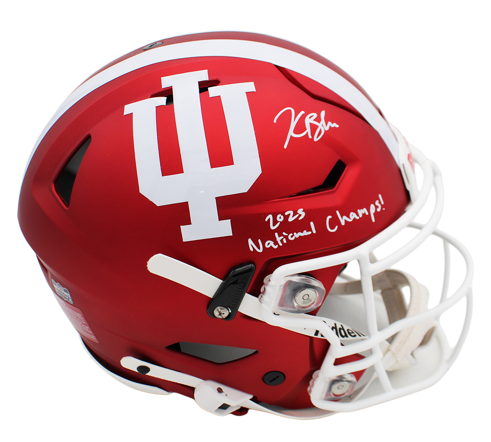 A Indiana Speed Flex Authentic NCAA Helmet hand signed by Kaelon Black. The item and signature are in excellent condition. In addition to signing his name, Kaelon also inscribed “National Champs” on the item. Kaelon is an American College football running back for the Indiana Hoosiers. Authentication: The item has been tagged with a Radtke Sports SmarTag powered by Prova Technology, which gives you digital access to the item’s authentication records.*** Radtke Sports uses professional lighting for our product images that may show reflections. We also feature watermarks on our proof pictures. The picture you see in the authentic record will not have a watermark.***
