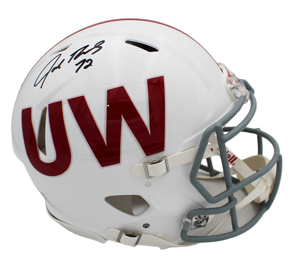 A Wisconsin Badgers Speed Authentic UW NCAA Helmet hand signed by Joe Thomas. The item and signature are in excellent condition. Joe is a former American football offensive tackle who played for the Cleveland Browns of the NFL for 11 seasons. He played college football for the University of Wisconsin. AUTHENTICATION: The item is accompanied by a JSA Serial Numbered & Databased Hologram ***Radtke Sports uses professional lighting for our product images that may show reflections. ***