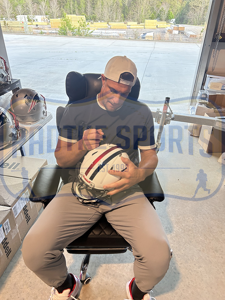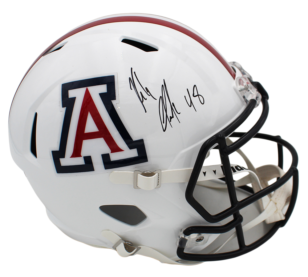 An Arizona Wildcats Replica Speed NCAA Helmet hand signed by Rob Gronkowski. The item and signature are in excellent condition. Rob is a 5x All-Pro First Team, 5x Pro Bowler, 2x Super Bowl Champion. AUTHENTICATION: Your item is tagged with a Rob Gronkowski exclusive Radtke Sports SmarTag powered by Prova Technology, which gives you digital access to your items authentication records, which includes a proof picture from the signing. *** Radtke Sports uses professional lighting for our product images that may show reflections. We also feature watermarks on our proof pictures. The picture you see in your authentication records will NOT have a watermark. ***