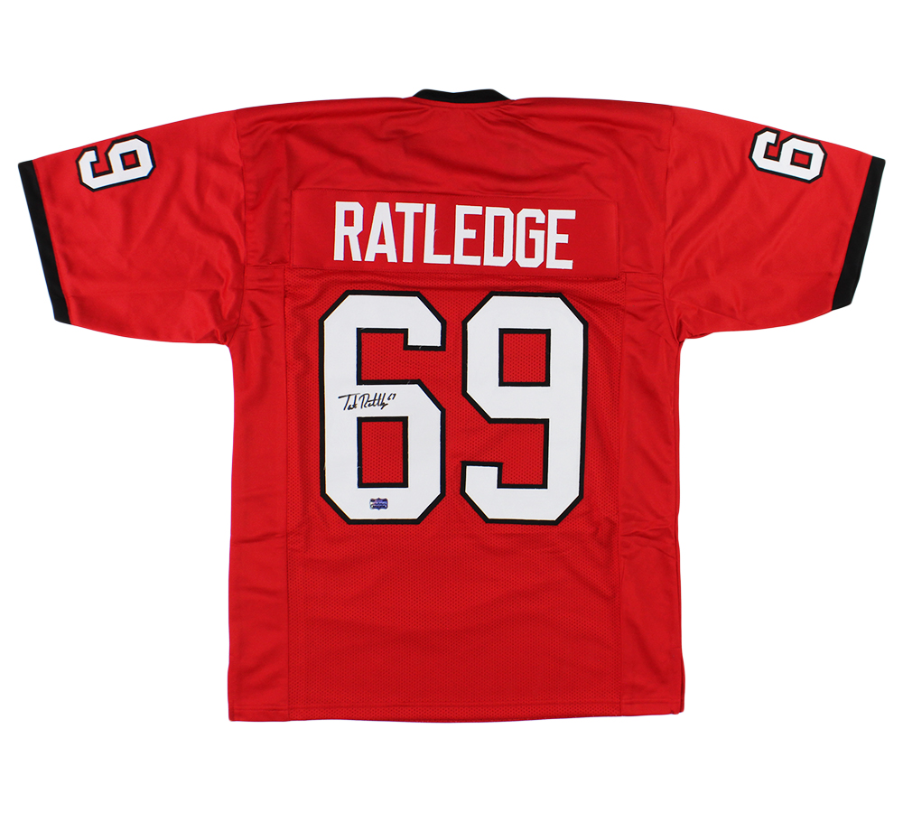 A Georgia Custom Red Jersey hand signed by Tate Ratledge. The item and signature are in excellent condition. Tate is a 6’6″, 308-pound offensive guard known for his strength and leadership. A three year starter at right guard for the Georgia Bulldogs, he earned his First Team All-SEC honors in 2023 and 2024, and was named a First Team All-American in 2024. Over his last 685 pass-blocking snaps, Ratledge allowed only one sack and 12 pressures. Selected 57th overall by the Detroit Lions in the 2025 NFL Draft, he is expected to compete immediately for a starting role on their offensive line. AUTHENTICATION: The item has been tagged with a Radtke Sports SmarTag powered by Prova Technology, which gives you digital access to the items authentication records, including a proof picture from the signing. ***Radtke Sports uses professional lighting for their product images that may show reflections. We also feature watermarks on our proof pictures. The picture you see in the authentication record will NOT have a watermark. ***