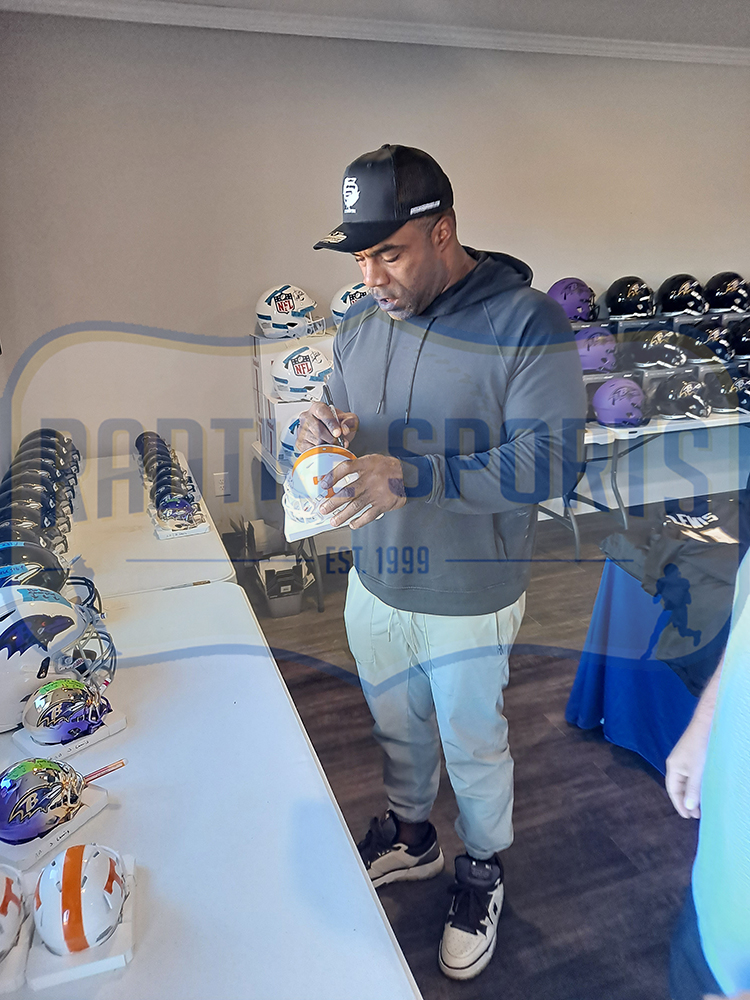 A Tennessee Vols Speed NCAA Mini Helmet hand signed by Jamal Lewis. The item and signature are in excellent condition. Jamal Lewis is a football running back. He played college football for the Tennessee Volunteers before being drafted by the Baltimore Ravens in the 1st round, 5th overall, in the 2000 NFL Draft. He is a Super Bowl Champ. In 2003 he was selected for the Pro Bowl, First Team All-Pro, NFL Offensive Player of the year and NFL Rushing Yards Leader of the year. AUTHENTICATION: Your item has been tagged with a Radtke Sports SmarTag powered by Prova Technology, which gives you digital access to your items authentication records, including a proof picture from the signing. ***Radtke Sports uses professional lighting for our product images that may show reflections. We also feature watermarks on our proof pictures. The picture you see in your authentication records will NOT have a watermark. ***