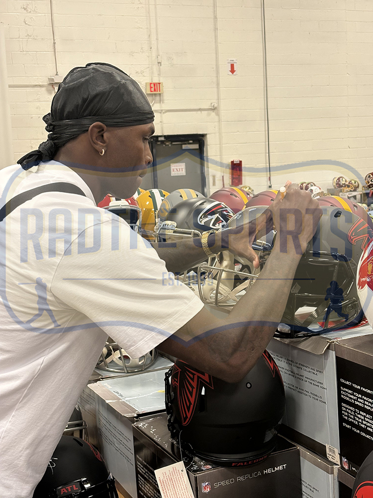 An Atlanta Falcons Speed Authentic Eclipse NFL Helmet hand signed by Julio Jones. The item and signature are in excellent condition. Julio is a wide receiver for the Atlanta Falcons. He played college football at Alabama, and in 2009, helped lead the Crimson Tide to an undefeated 14–0 season, including a victory in the 2010 BCS National Championship Game. He was drafted by the Atlanta Falcons sixth overall in the 2011 NFL Draft. AUTHENTICATION: The item has been tagged with a Radtke Sports SmarTag powered by Prova Technology, which gives you digital access to the items authentication records, including a proof picture from the signing. ***Radtke Sports uses professional lighting for their product images that may show reflections. We also feature watermarks on our proof pictures. The picture you see in the authentication record will NOT have a watermark. ***