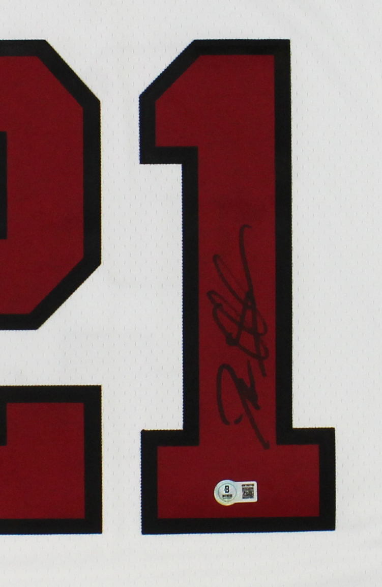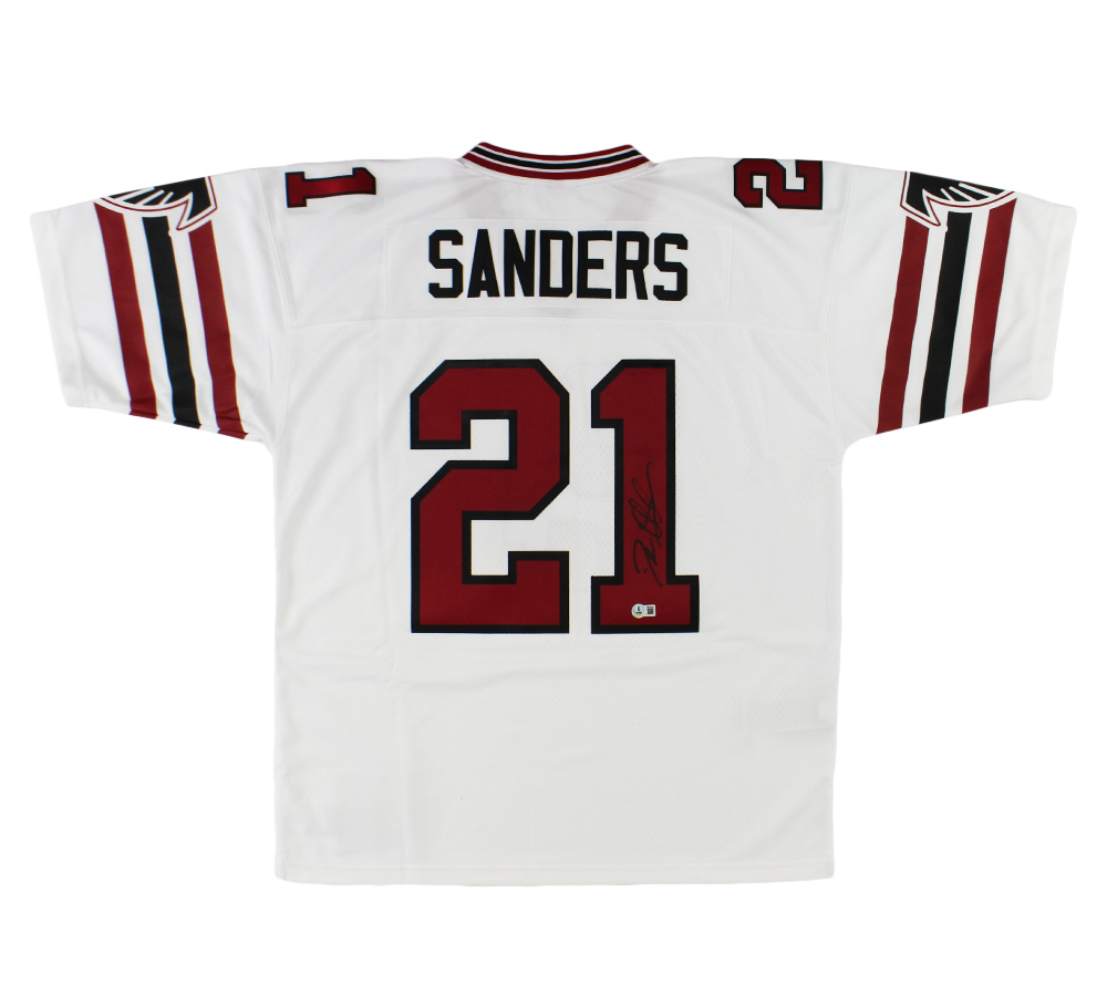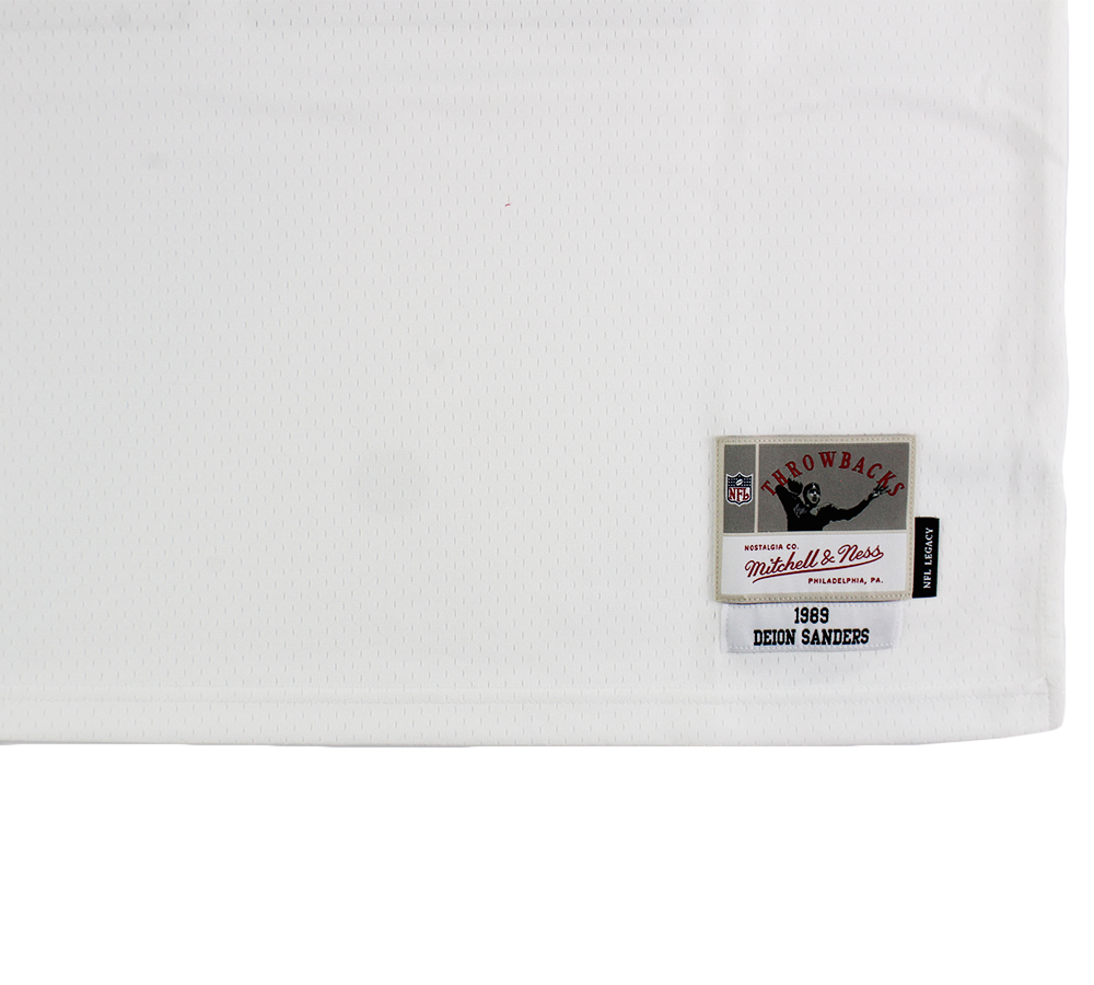 An Atlanta Falcons Mitchell & Ness Authentic 1989 White NFL Jersey hand signed by Deion Sanders. The item and signature are in excellent condition. Deion is a 2x Super Bowl Champion, 8x Pro Bowler, in the Atlanta Falcons Ring of Honor and dominated two sports during his career. AUTHENTICATION: The item is accompanied by a Beckett Serial Numbered and Databased Hologram. ***Radtke Sports uses professional lighting for our product images that may show reflections.***