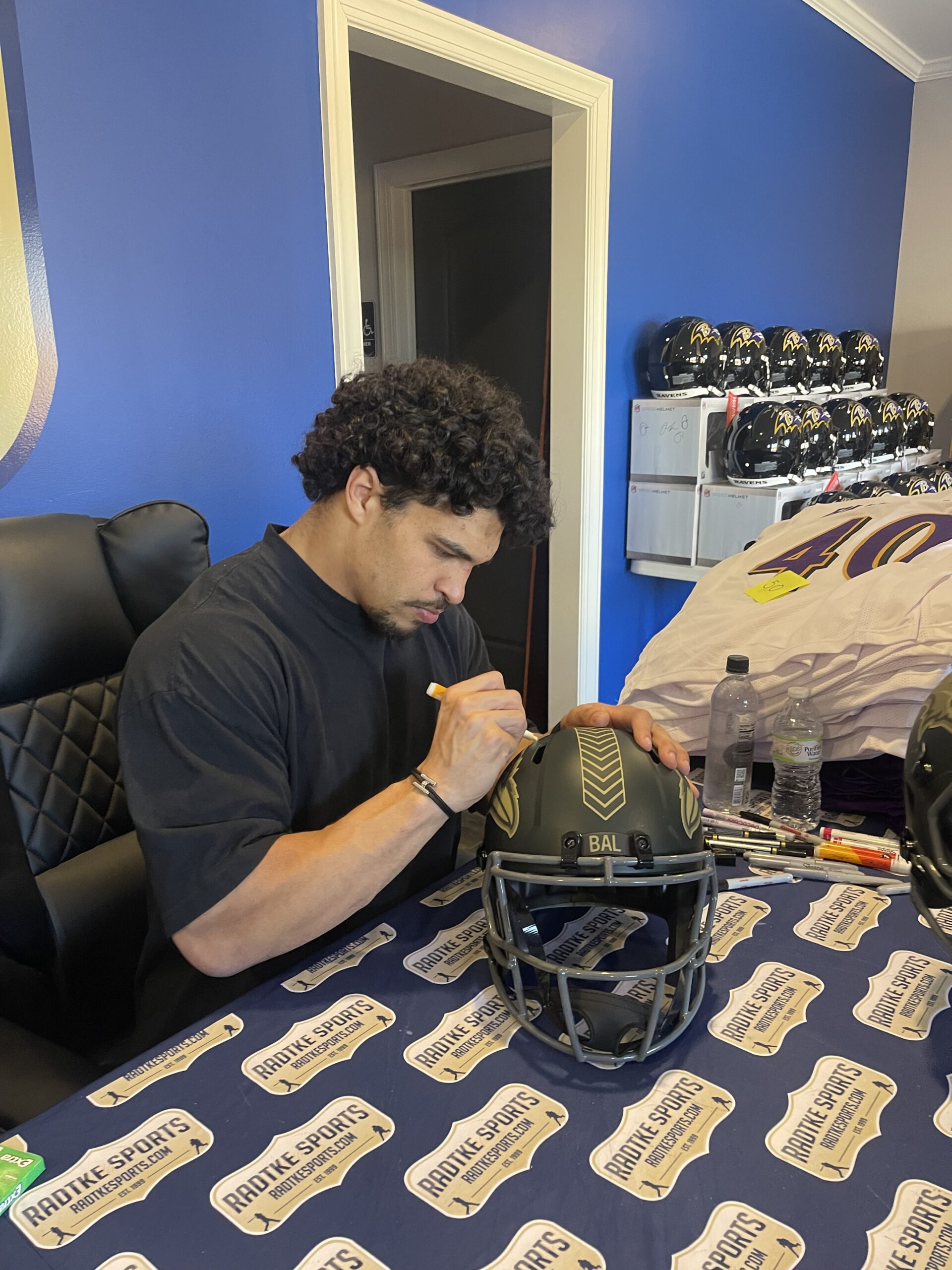 A Baltimore Ravens Speed Replica STS 4 NFL Helmet hand signed by Teddye Buchanan. The item and signature are in excellent condition. Teddye is a NFL Football linebacker for the Baltimore Ravens. He played college football for the UC Davis Aggies and California Golden Bears. He was chosen by the Ravens in the fourth round of the 2025 NFL draft. AUTHENTICATION: Your item is tagged with a Radtke Sports SmarTag powered by Prova Technology, which gives you digital access to your items authentication records, which includes a proof picture from the signing. *** Radtke Sports used professional lighting for our product images that may show reflections. ***
