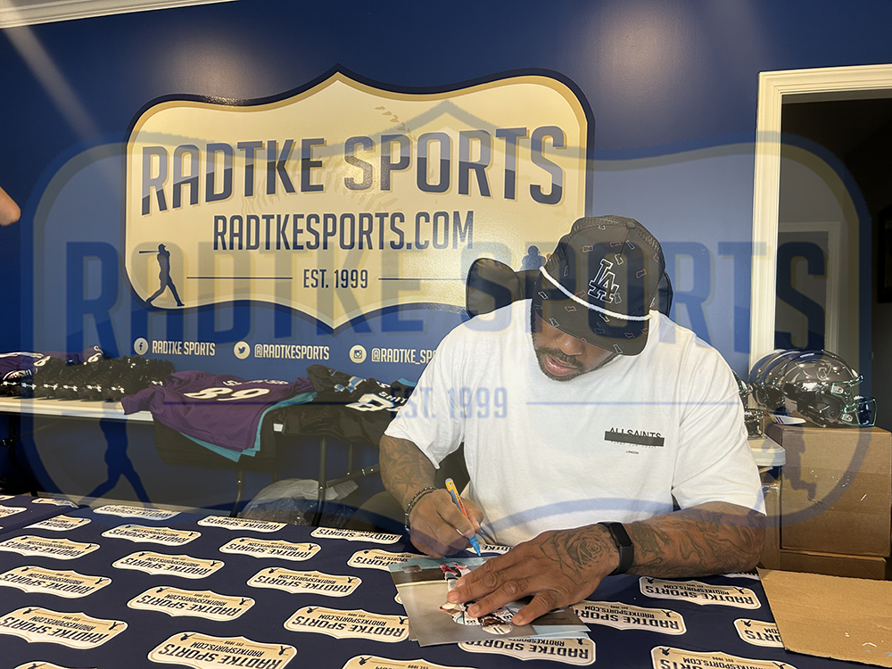 A Carolina Panthers Unframed 8×10 Photo hand signed by Steve Smith Sr. The item and signature are in excellent condition. In addition to signing his name, Steve also inscribed “Agent 89” on the item. Steve is one of the feistiest players in NFL history. His attitude and determination have made him a fan favorite in Baltimore and Carolina. Now bring home a piece of his exclusive memorabilia line that celebrates the career of a true NFL icon. AUTHENTICATION: The item has been tagged with a Radtke Sports SmarTag powered by Prova Technology, which gives you digital access to the items authentication records, including a proof picture from the signing. ***Radtke Sports uses professional lighting for their product images that may show reflections. We also feature watermarks on our proof pictures. The picture you see in the authentication record will NOT have a watermark. ***