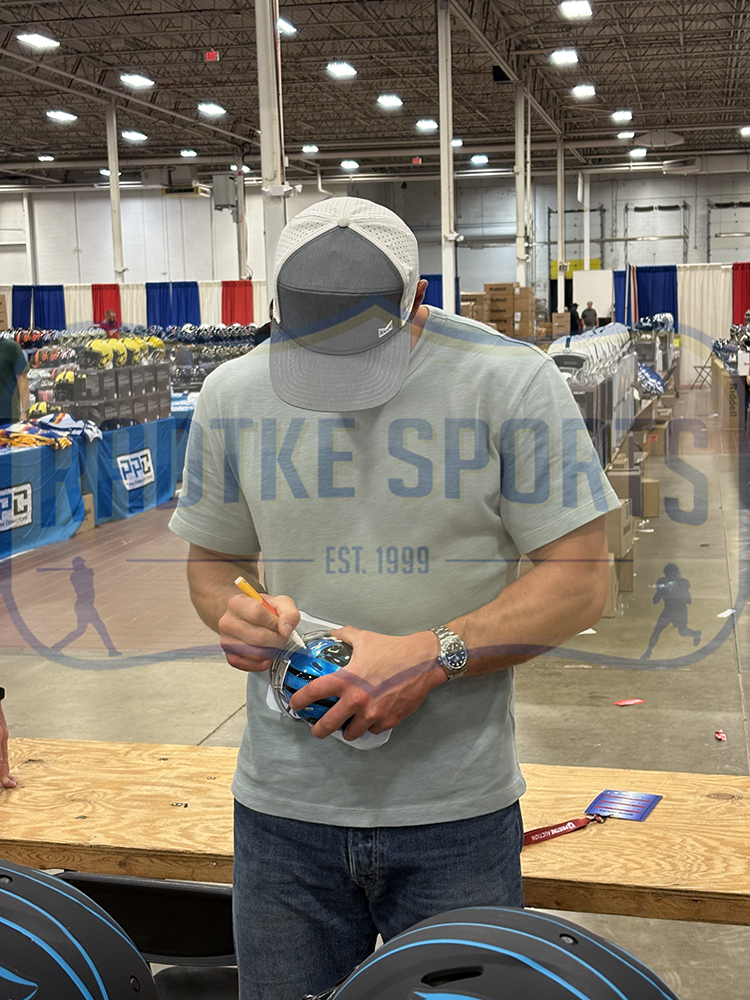A Carolina Panthers Speed Flash NFL Mini Helmet hand signed by Luke Kuechly. The item and signature are in excellent condition – Luke established himself as an elite talent quickly by winning Defensive Rookie of the Year Award and then Defensive Player of the Year. He is a 7x Pro Bowler and 3x Butkus Award winner. AUTHENTICATION: Your item has been tagged with a Radtke Sports SmarTag Powered by Prova Technology, which gives you digital access to your items authentication records, including a proof picture from the signing. ***Radtke Sports uses professional lighting for our product images that may show reflections. We also feature watermarks on our proof pictures. The picture you see in your authentication records will NOT have a watermark. ***
