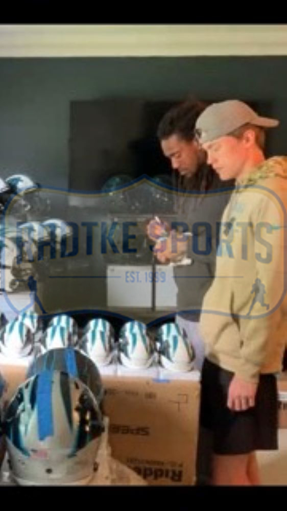 An Carolina Panthers Speed Lunar NFL Mini Helmet hand signed by Shaq Thompson. The item and signature are in excellent condition. Shaq is a football outside linebacker. He was drafted in the round 1 of the 2015 NFL Draft by the Carolina Panthers. He was awarded the Hornung Award in 2014. AUTHENTICATION: The item is accompanied by a Radtke Sports Certificate of Authenticity – Radtke Sports Serial Numbered and Databased Hologram – Picture of Shaq from the Signing *** Radtke Sports uses professional lighting for our product images that may show reflections. We also feature watermarks on our proof pictures. The picture you receive will NOT have a watermark. ***