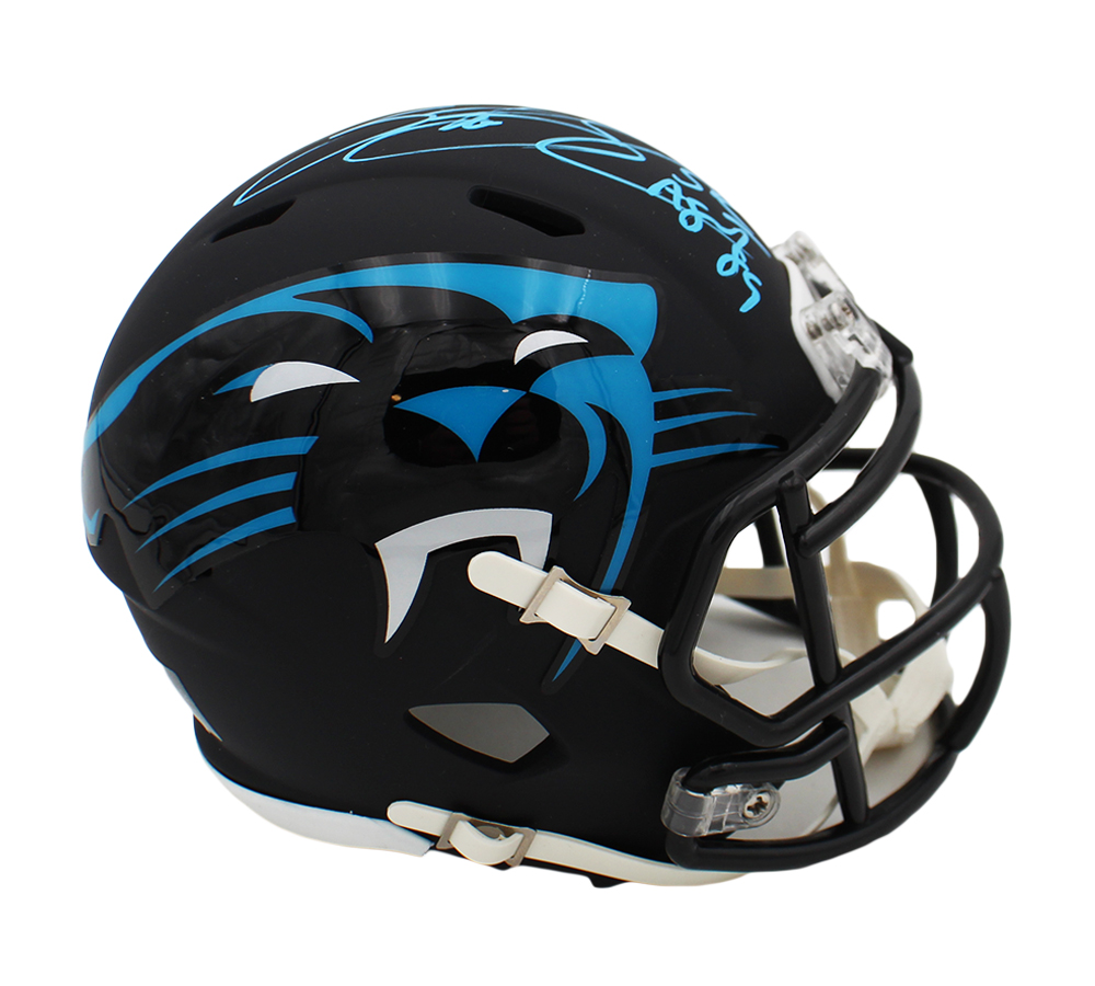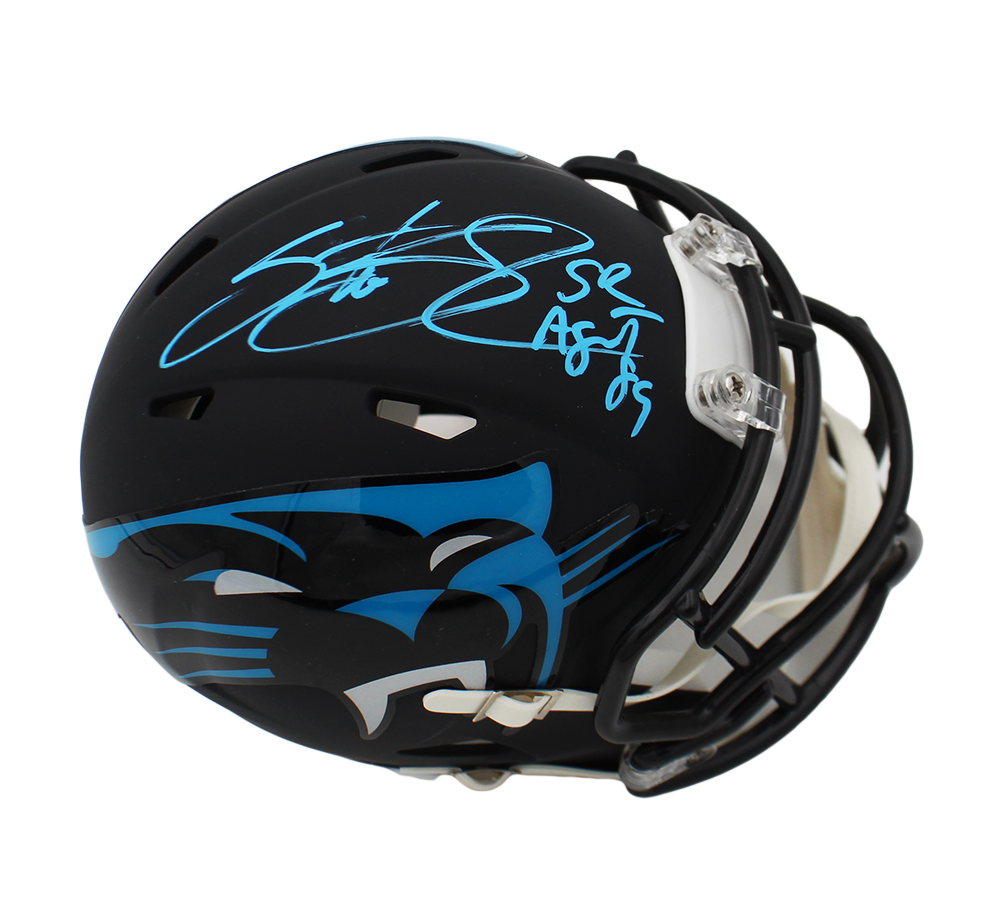 A Carolina Panthers Speed AMP NFL Mini Helmet hand signed by Steve Smith Sr. The item and signature are in excellent condition. In addition to signing his name, Steve also inscribed “Agent 89” on the item. Steve is one of the feistiest players in NFL history. His attitude and determination have made him a fan favorite in Baltimore and Carolina. Now bring home a piece of his exclusive memorabilia line that celebrates the career of a true NFL icon. AUTHENTICATION: The item has been tagged with a Radtke Sports SmarTag powered by Prova Technology, which gives you digital access to the items authentication records, including a proof picture from the signing. ***Radtke Sports uses professional lighting for their product images that may show reflections. We also feature watermarks on our proof pictures. The picture you see in the authentication record will NOT have a watermark. ***