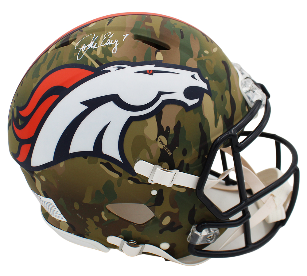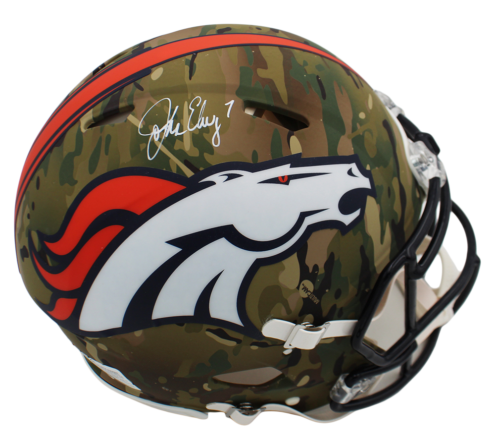 John Elway Signed Denver Broncos Speed Authentic Camo NFL Helmet