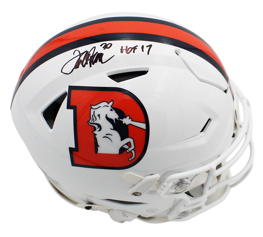 Terrell Davis Signed Denver Broncos Speed Flex Authentic Alternate Snowcap NFL Helmet with “HOF 17” Inscription