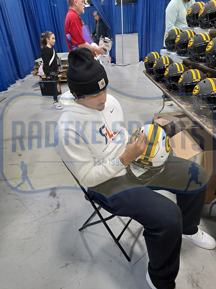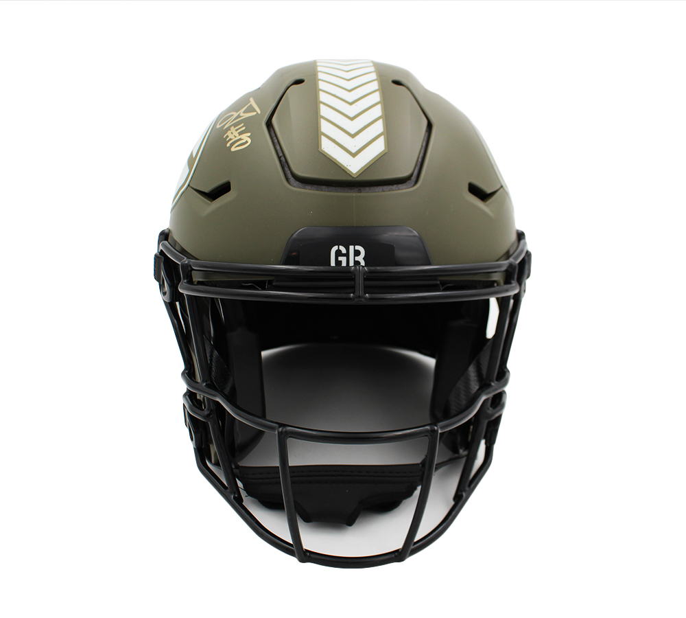 A Green Bay Packers Speed Flex Authentic Salute to Service NFL Helmet hand signed by Jordan Love. The item and signature are in excellent condition. Jordan is a football quarterback for the Green Bay Packers drafted in the 2020 NFL Draft. AUTHENTICATION: Your item is tagged with a Radtke Sports SmarTag Powered by Prova Technology, which gives you digital access to your items authentication records, including a proof picture from the signing. ***Radtke Sports uses professional lighting for our product images that may show reflections. We also feature watermarks on our proof pictures. The picture you see in you authentication records will NOT have a watermark. ***