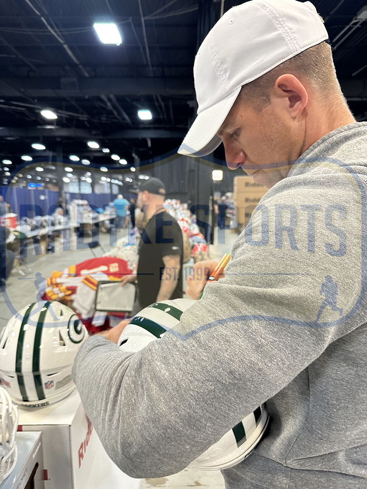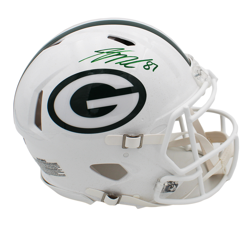 A Green Bay Packers Speed Authentic Alternate White NFL Helmet Signed by Jordy Nelson. The item and signature are in excellent condition. Jordy is a former NFL wide receiver, he was picked 2nd round in the 2008 NFL Draft by the Green Bay Packers. Super Bowl XLV Champion, Pro Bowler, 2016 NFL Comeback Player of the Year, 2017 Best Comeback Athlete ESPY Award, 2016 NFL receiving touchdowns leader. AUTHENTICATION: The item has been tagged with a Radtke Sports SmarTag powered by Prova Technology, which gives you digital access to the items authentication records, including a proof picture from the signing. ***Radtke Sports uses professional lighting for their product images that may show reflections. We also feature watermarks on our proof pictures. The picture you see in the authentication record will NOT have a watermark. ***