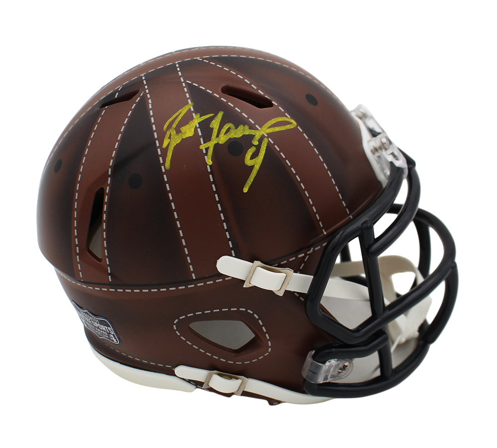 Brett Favre Signed Green Bay Packers Speed Alternate 25 Leatherhead NFL Mini Helmet