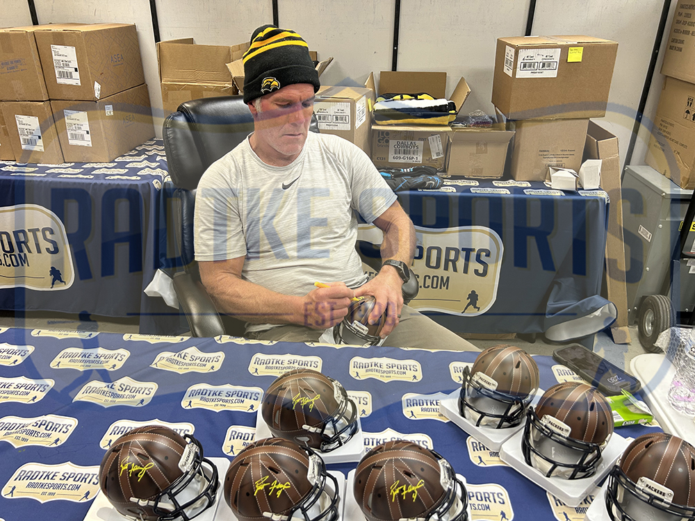 A Green Bay Packers Speed Alternate 25 Leatherhead NFL Mini Helmet hand signed by Brett Favre. The item and signature are in excellent condition. Brett is one of the most iconic players in NFL history. A 20 year veteran of the NFL, Brett is a Super Bowl Champion, 11x Pro Bowler, 3x AP NFL Most Valuable Player, 4x NFL passing touchdowns leader, and 2x passing yards leader. His number, 4, has been retired by both the Green Bay Packers and the Southern Miss Golden Eagles. Brett was inducted into the Pro Football Hall of Fame in 2016. AUTHENTICATION: Your item has been tagged with a Brett Favre Exclusive Radtke Sports SmarTag powered by Prova Technology, which gives you digital access to your items authentication records, including a proof picture from the signing. ***Radtke Sports uses professional lighting for our product images that may show reflections. We also feature watermarks on our proof pictures. The picture you see in your authentication records will NOT have a watermark. ***