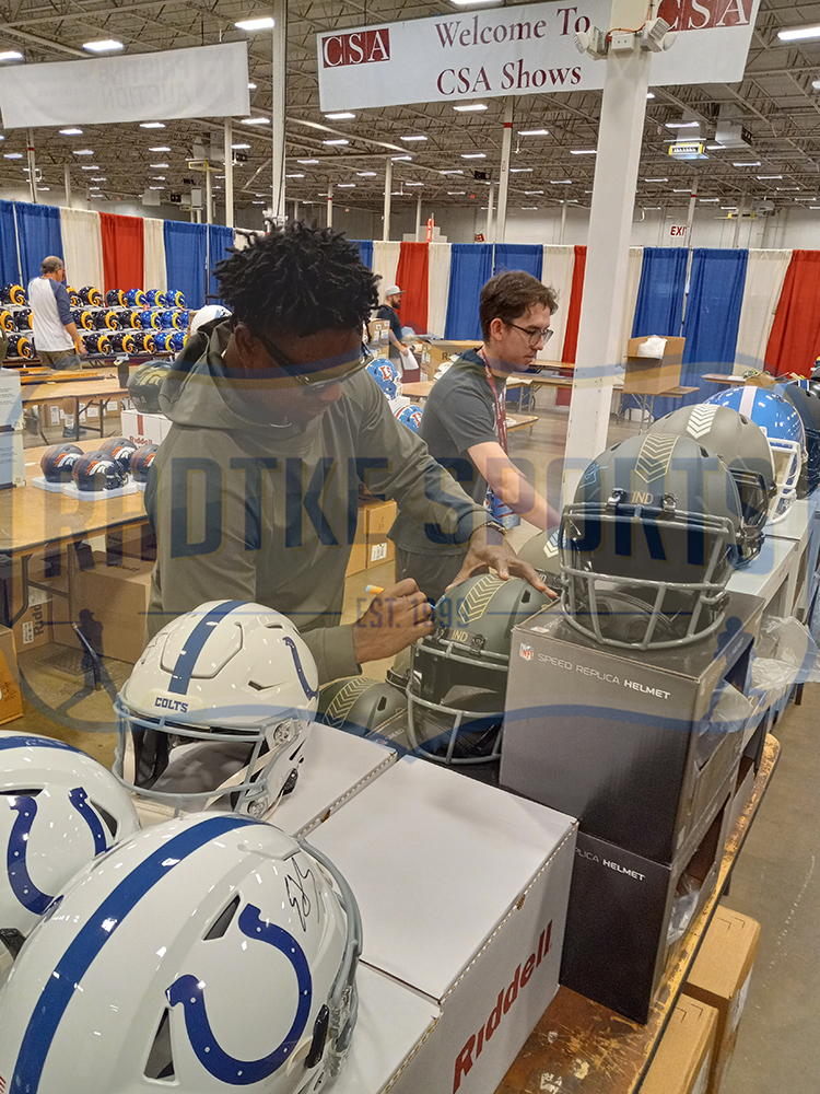 A Indianapolis Colts Speed Replica Salute to Service 4 NFL Helmet hand signed by Edgerrin James. The item and signature are in excellent condition. Edgerrin James is a former football running back and was drafted by the Indianapolis Colts fourth overall in the 1999 NFL Draft. Edgerrin played college football at the University of Miami. AUTHENTICATION: The item has been tagged with a Radtke Sports SmarTag powered by Prova Technology, which gives you digital access to the items authentication records, including a proof picture from the signing. ***Radtke Sports uses professional lighting for their product images that may show reflections. We also feature watermarks on our proof pictures. The picture you see in the authentication record will NOT have a watermark. ***