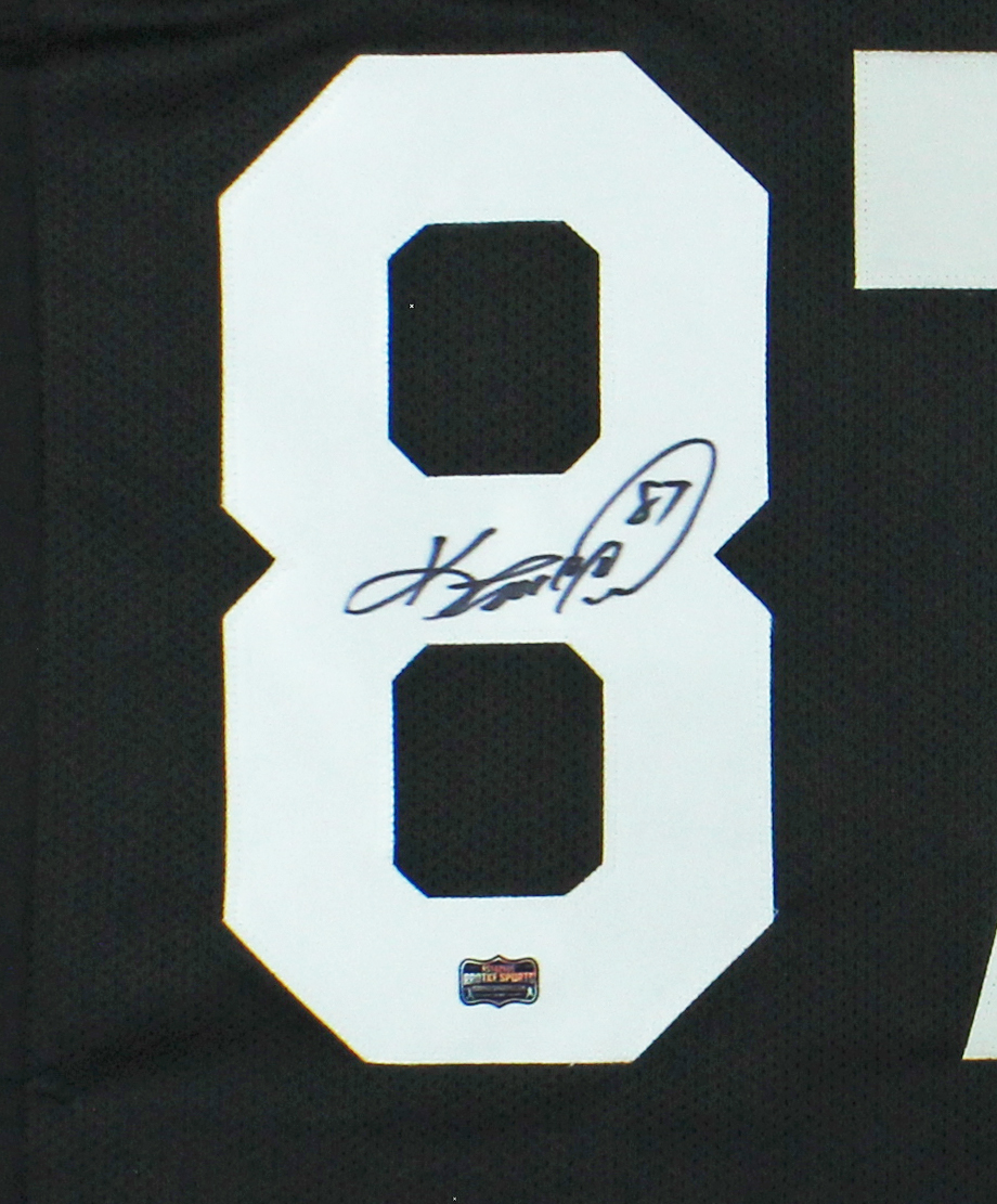 A Jacksonville Custom Black Jersey hand signed by Keenan McCardell. The item and signature are in excellent condition. Keenan was drafted into the NFL 1991, he is a 2x Pro Bowler (1996,2003), 2x Super Bowl Champion (XXVI,XXXVII) and he is in the 10,000 Receiving Yards Club. AUTHENTICATION: The item has been tagged with a Radtke Sports SmarTag powered by Prova Technology, which gives you digital access to the items authentication records, including a proof picture from the signing. ***Radtke Sports uses professional lighting for their product images that may show reflections. We also feature watermarks on our proof pictures. The picture you see in the authentication record will NOT have a watermark. ***
