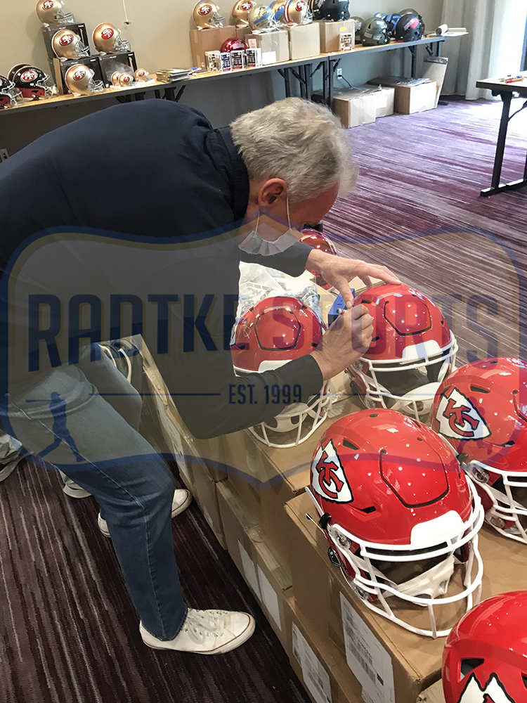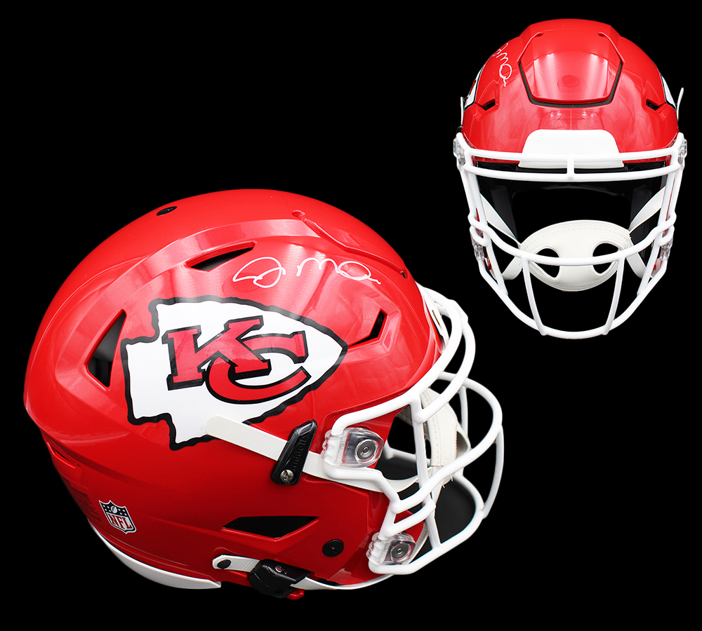 A Kansas City Chiefs Speed Flex Authentic NFL Helmet hand signed by Joe Montana. The item and signature are in excellent condition. Joe is a former quarterback who played in the NFL for 16 seasons, primarily with the San Francisco 49ers. He also played for the Kansas City Chiefs. After winning a national championship at Notre Dame, Montana started his career in 1979 with the 49ers, where he played for the next 14 seasons. AUTHENTICATION: The item is accompanied by a Radtke Sports Certificate of Authenticity – Radtke Sports Serial Numbered and Databased Hologram – Picture of Joe from the signing *** Radtke Sports uses professional lighting for our product images that may show reflections. We also feature watermarks on our proof pictures. The picture you receive will NOT have a watermark. ***