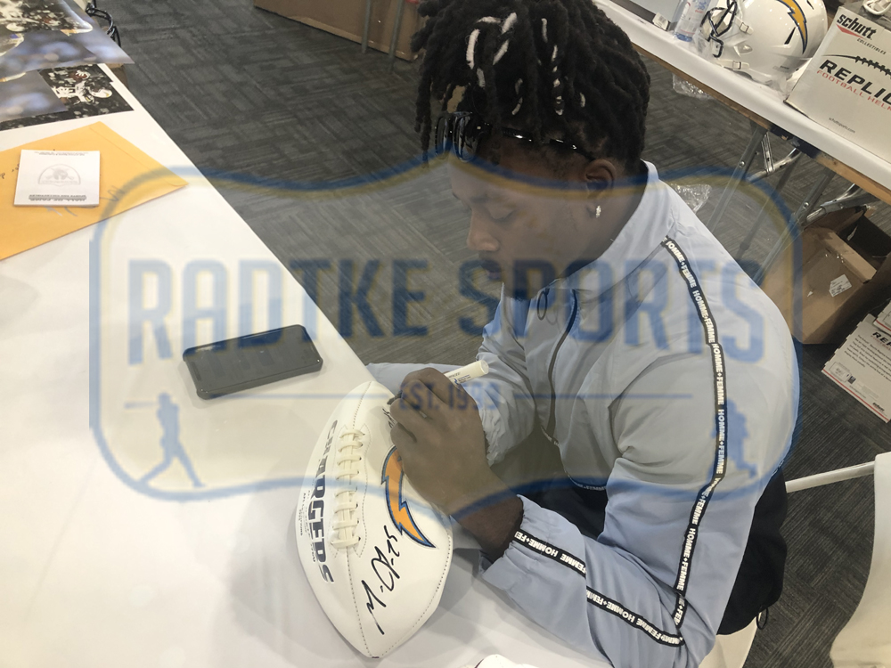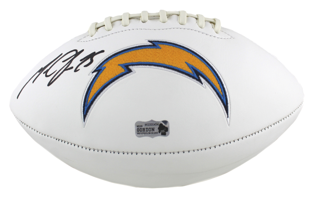 A Los Angeles Chargers Embroidered NFL Football hand signed by Melvin Gordon. The item and signature are in excellent condition. Melvin Gordon III is a running back for the Los Angeles Chargers. He played college football at Wisconsin, and was drafted by the Chargers in the first round of the 2015 NFL Draft. AUTHENTICATION: The item is accompanied by a Melvin Gordon Exclusive Radtke Sports Certificate of Authenticity – Radtke Sports Serial Numbered and Databased Hologram – Picture of Melvin from the signing. *** Radtke Sports uses professional lighting for our product images that may show reflections. We also feature watermarks on our proof pictures. The picture you receive will NOT have a watermark***