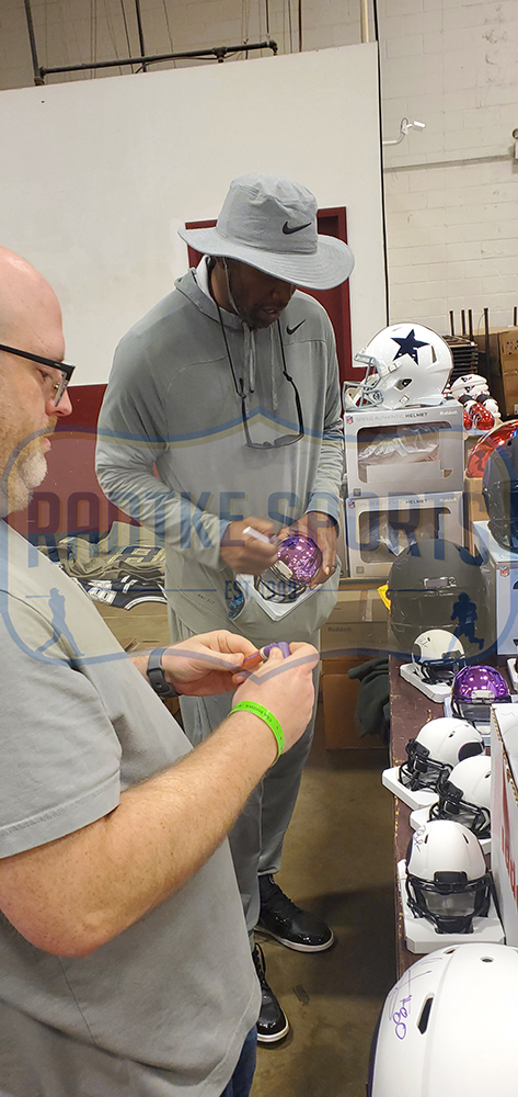 A Minnesota Vikings Speed Chrome NFL Mini Helmet hand signed by Randy Moss. The item and signature are in excellent condition. Randy was drafted in the NFL in 1998 in Round:1 Pick:21. Randy first started off playing for the Vikings team in 1998 and his career ended in 2004 for playing with the Vikings. Randy was picked for the NFL Offensive Rookie of the Year in 1998. In 1998, Moss helped the Vikings to become the number 1 rated offense ever at the time, setting the single-season record for scoring. AUTHENTICATION: Your item has been tagged with a Radtke Sports SmarTag powered by Prova technology, which gives you digital access to your items authentication records, including a proof picture from the signing. ***Radtke Sports uses professional lighting for our product images that may show reflections. We also feature watermarks on our proof pictures. The picture you see in your authentication records will NOT have a watermark. ***