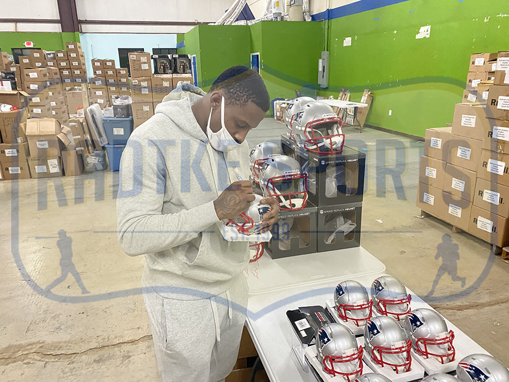 A New England Patriots Speed NFL Mini Helmet hand signed by JC Jackson. The item and signature are in excellent condition. JC is an NFL cornerback for the New England Patriots. He is Super Bowl Champion. He played college football at Maryland. AUTHENTICATION: The item is accompanied by a Radtke Sports Certificate of Authenticity – Radtke Sports Serial Numbered and Databased Hologram – Picture of JC from the signing *** Radtke Sports uses professional lighting for our product images that may show reflections. We also feature watermarks on our proof pictures. The picture you receive will not have a watermark. ***