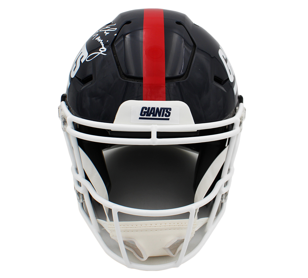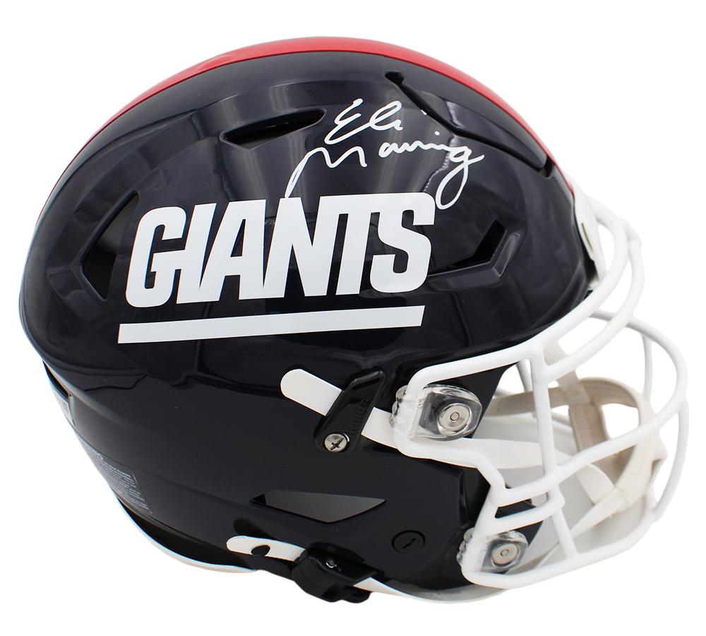 A New York Giants Speed Flex Authentic Throwback 1981-1999 NFL Helmet hand signed by Eli Manning. The item and signature are in excellent condition. Eli is a former quarterback who played in the NFL for 16 seasons with the New York Giants. After playing college football at the University of Mississippi, he was selected as the first overall pick in the 2004 NFL Draft by the San Diego Chargers and traded to the Giants during the draft. He is the youngest son of former NFL quarterback Archie Manning and younger brother of former NFL quarterback Peyton Manning. AUTHENTICATION: The item is accompanied by a Fanatics Authentic Serial Numbered and Databased Hologram *** Radtke Sports uses professional lighting for our product images that may show reflections. ***