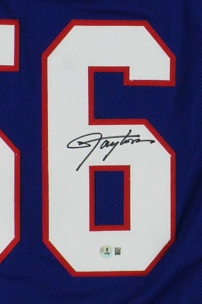 A New York Custom Blue Jersey hand signed by Lawrence Taylor. The item and signature are in excellent condition. Lawrence is considered one of the greatest defensive players of All Time. He is a 2 time Super Bowl Champion, 10 time Pro Bowler, 1986 NFL MVP and 3 time NFL Defensive Player of the Year. AUTHENTICATION: The item is accompanied by a Beckett Serial Numbered and Databased Hologram ***Radtke Sports uses professional lighting for our product images that may show reflections. ***