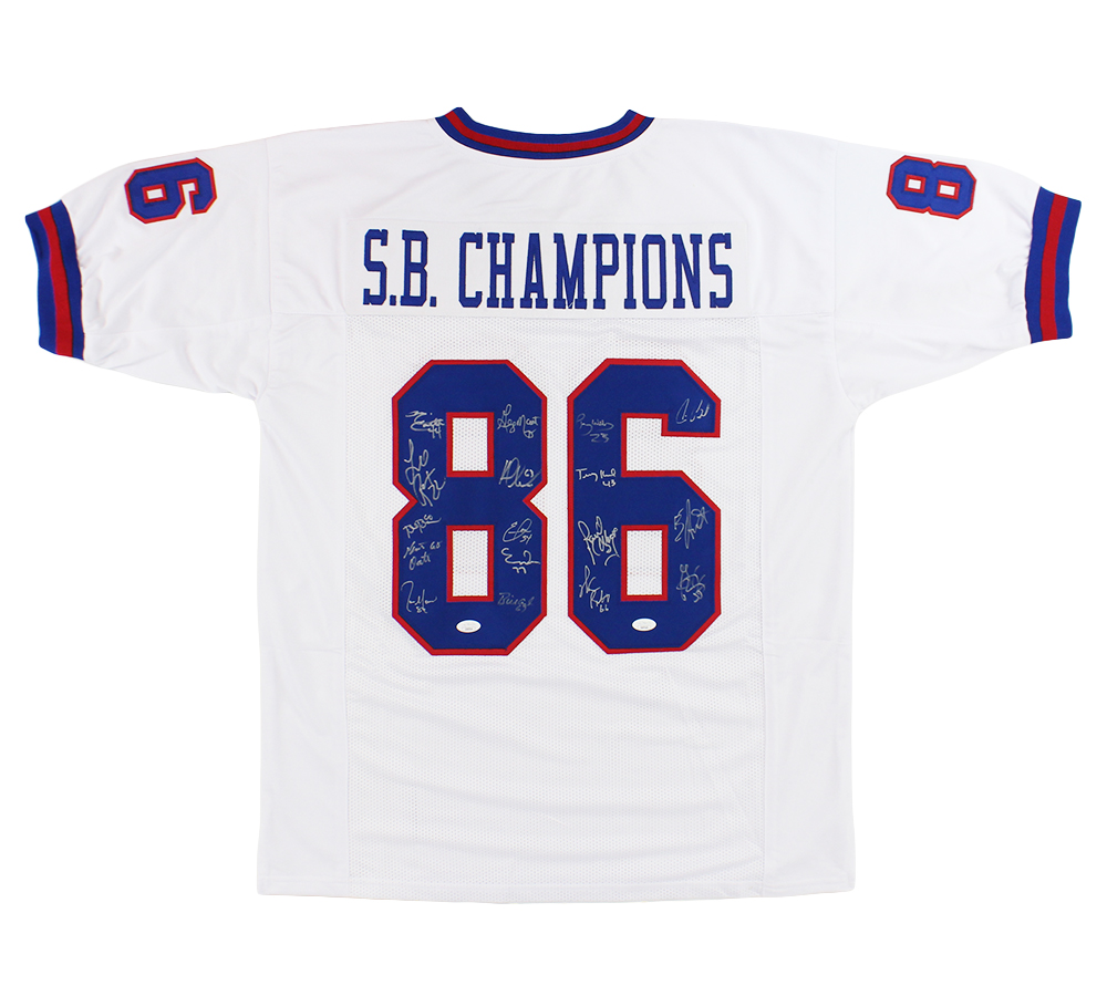 Super Bowl Champions Signed 1986 New York Custom White Jersey with 18 Signatures Including Maurice Carthon & Lee Kenny
