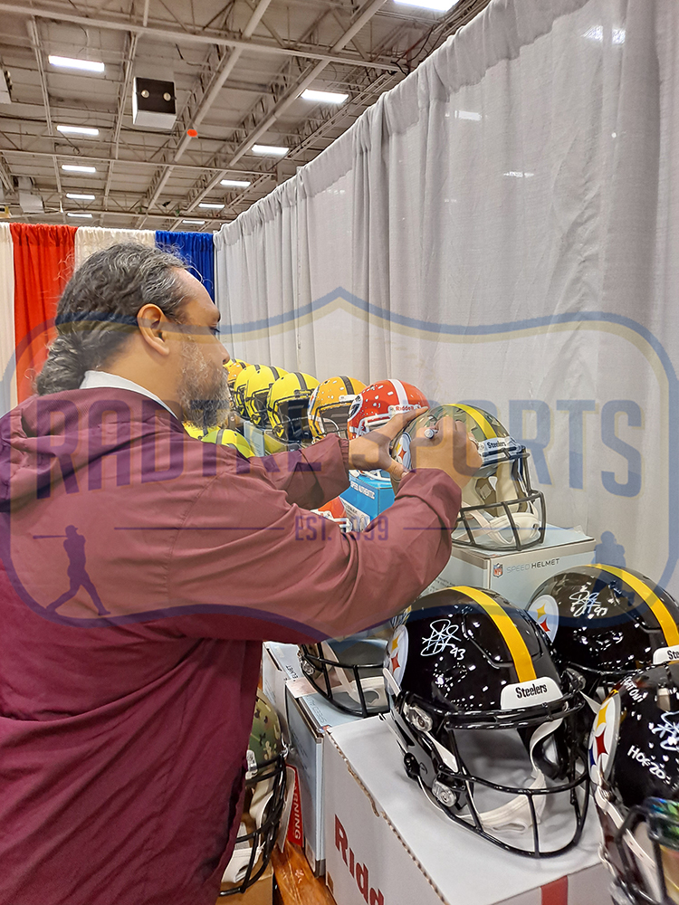 A Pittsburgh Steelers Speed Authentic Camo NFL Helmet hand signed by Troy Polamalu. The item and signature are in excellent condition. Troy was drafted in the 1st round of the 2003 NFL Draft by the Pittsburgh Steelers. He is a 2x Super Bowl Champ, 8x Pro Bowler & 4x First-team All Pro. AUTHENTICATION: The item has been tagged with a Radtke Sports SmarTag powered by Prova Technology, which gives you digital access to the items authentication records, including a proof picture from the signing. ***Radtke Sports uses professional lighting for their product images that may show reflections. We also feature watermarks on our proof pictures. The picture you see in the authentication record will NOT have a watermark. ***