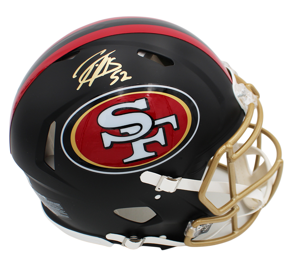 A San Francisco 49ers Speed Authentic Rivalries 25 NFL Helmet hand signed Patrick Willis. The item and signature are in excellent condition. Patrick was drafted by the San Francisco 49ers in the first round of the 2007 NFL Draft. He played college football for the University of Mississippi and received consensus All-American honors. As a member of the 49ers, Willis made the Pro Bowl in his first seven seasons and earned All-Pro honors in his first six years. He won the college Butkus Award in 2006 while at Ole Miss, and in 2009 he won the professional Butkus Award while with the 49ers. AUTHENTICATION: The item has been tagged with a Beckett Serial Numbered and Databased Hologram ***Radtke Sports uses professional lighting for our product images that may show reflections. ***