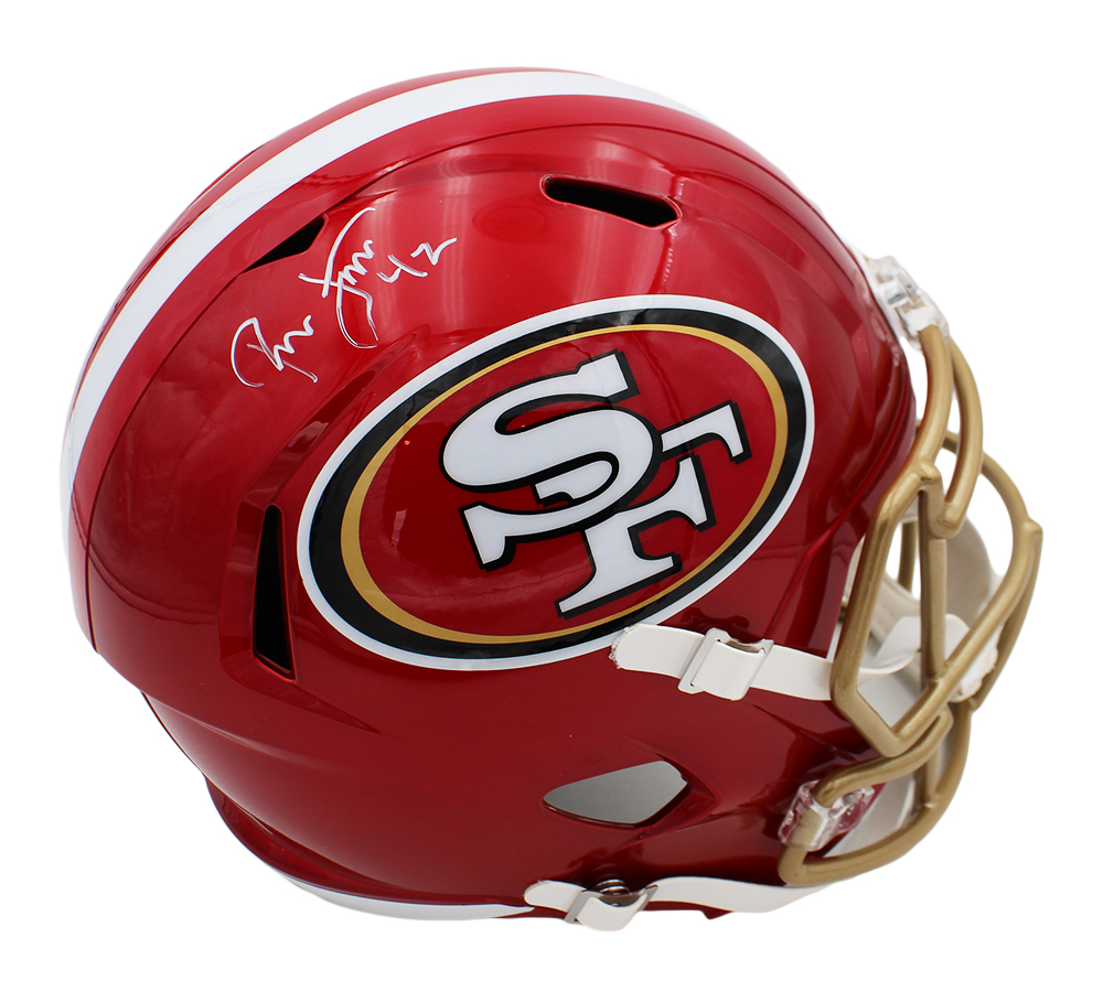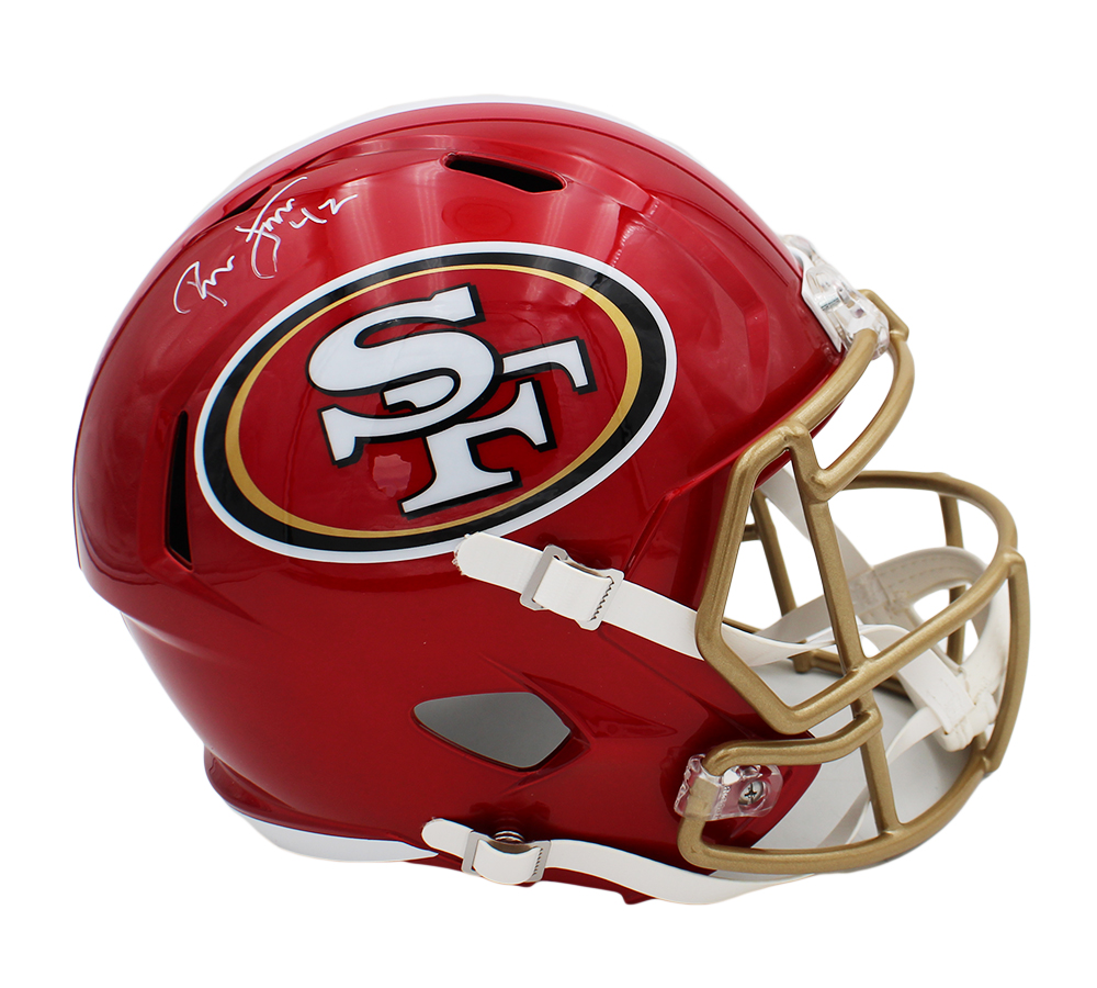 A San Francisco 49ers Speed Replica Flash NFL Helmet hand signed by Ronnie Lott. The item and signature are in excellent condition. Ronnie played college football for the University of Southern California (USC), and was honored as a consensus All-American. A first-round pick in the 1981 NFL Draft, he played for the San Francisco 49ers, Los Angeles Raiders, New York Jets, and Kansas City Chiefs of the NFL. AUTHENTICATION: The item is accompanied by a Beckett Serial Numbered and Databased Hologram. ***Radtke Sports uses professional lighting for our product images that may show reflections.***