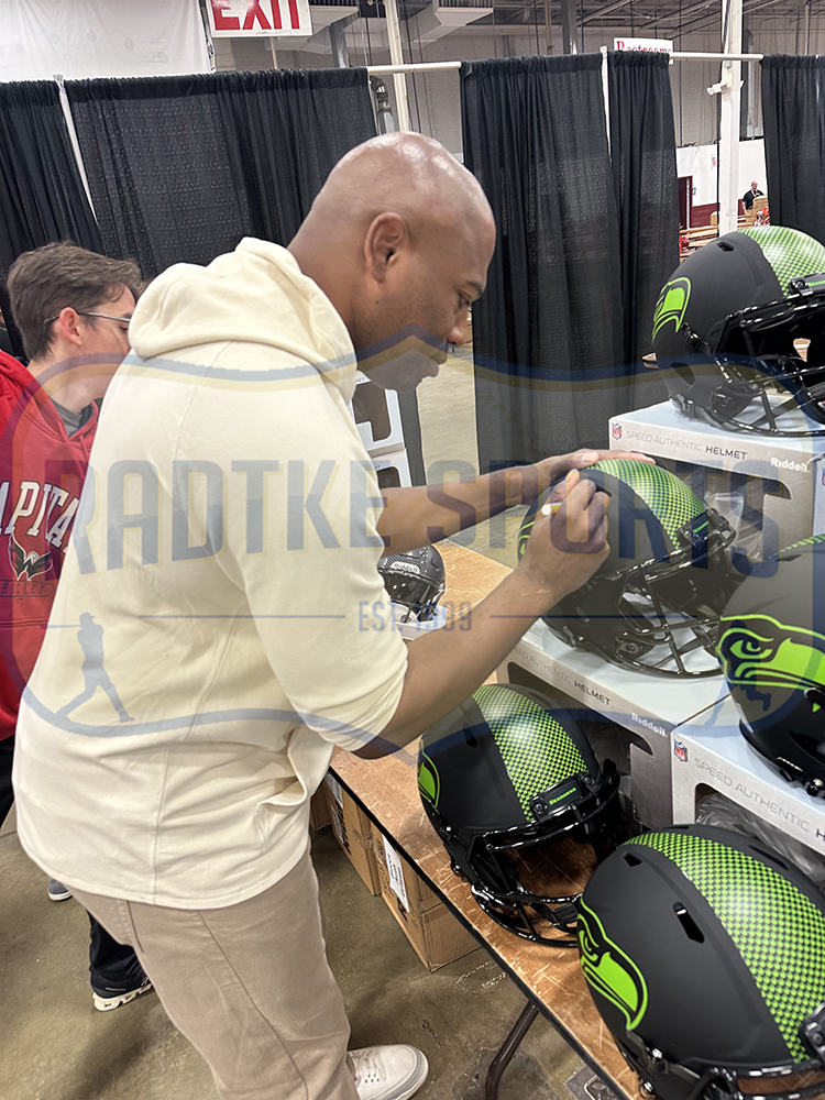 A Seattle Seahawks Speed Authentic Eclipse NFL Helmet hand signed by Shaun Alexander. The item and signature are in excellent condition. In addition to signing his name, Shaun also inscribed “PS 37:4” on the item. Shaun was drafted into the NFL in 2000 in Round:1. He was the NFL Most Valuable Player in 2005. Shaun is NFL Offensive Player of the Year in 2005, First-team ALL-Pro in 2005 and a 3x Pro Bowler. AUTHENTICATION: Your item has been tagged with a Radtke Sports SmarTag powered by Prova Technology, which gives you digital access to your items authentication records, including a proof picture from the signing. ***Radtke Sports uses professional lighting for our product images that may show reflections. We also feature watermarks on our proof pictures. The picture you see in your authentication records will NOT have a watermark. ***