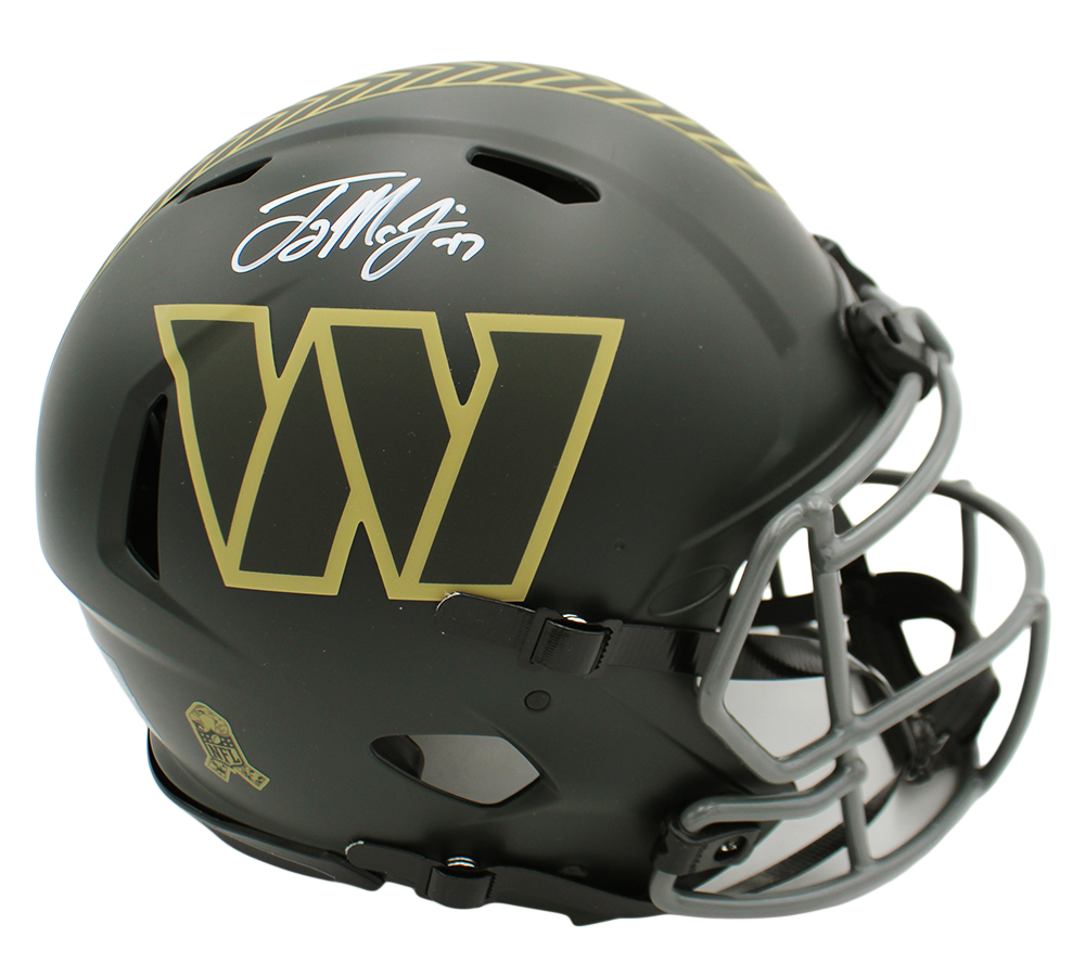 A Washington Commanders Speed Authentic Salute to Service 4 NFL Helmet hand signed by Terry McLaurin. The item and signature are in excellent condition. McLaurin is a wide receiver for the Washington Commanders (NFL). He played college football for the Ohio State Buckeyes and was selected by Washington in the third round of the 2019 NFL draft. In 2024, McLaurin set the team record for most touchdown catches in a season with 13 and earned second-team All-Pro honors. AUTHENTICATION: The item has been tagged with a Beckett Serial Numbered and Databased Hologram. ***Radtke Sports uses professional lighting for their product images that may show reflections. ***