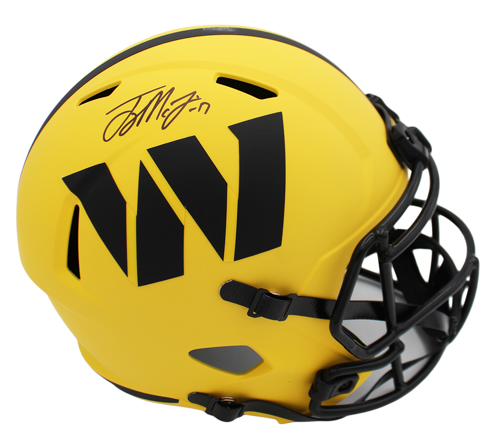 A Washington Commanders Speed Replica Rave NFL Helmet hand signed by Terry McLaurin. The item and signature are in excellent condition. McLaurin is a wide receiver for the Washington Commanders (NFL). He played college football for the Ohio State Buckeyes and was selected by Washington in the third round of the 2019 NFL draft. In 2024, McLaurin set the team record for most touchdown catches in a season with 13 and earned second-team All-Pro honors. AUTHENTICATION: The item has been tagged with a Beckett Serial Numbered and Databased Hologram. ***Radtke Sports uses professional lighting for their product images that may show reflections. ***